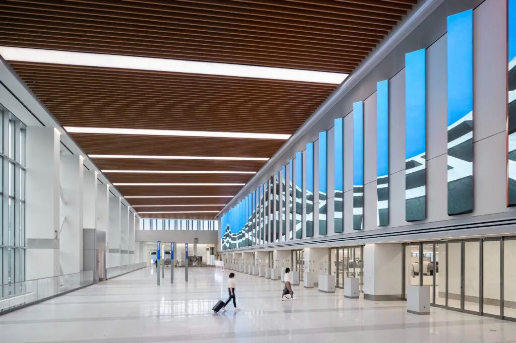 在行李提取处,出口处的四个高分辨率媒体带展示了当地人熟悉的城市景观。