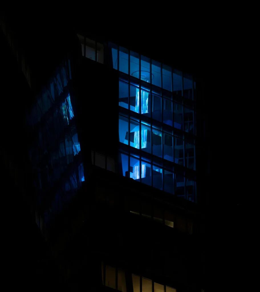 这是一个数字媒体装置,高约7米,其 32 层中的每一层都对应着塔楼的一层。