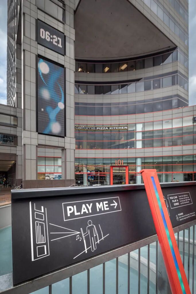 ESI 为城镇广场设计了一个有趣的交互式音乐钟楼,称为 Chromaphone。这个公共艺术装置将到访广场的每个人都变成了音乐家。