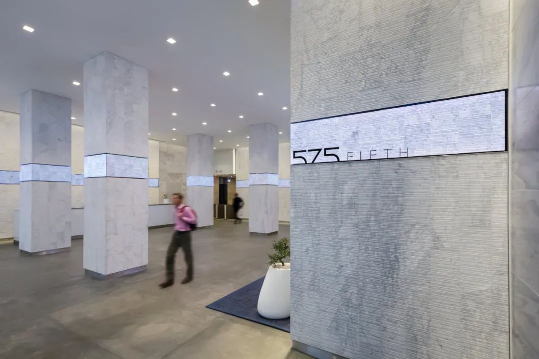 第五大道 575 号的旧大厅由 Beacon Capital Partners 所有,后改造成WeWork,一个联合办公场所。
