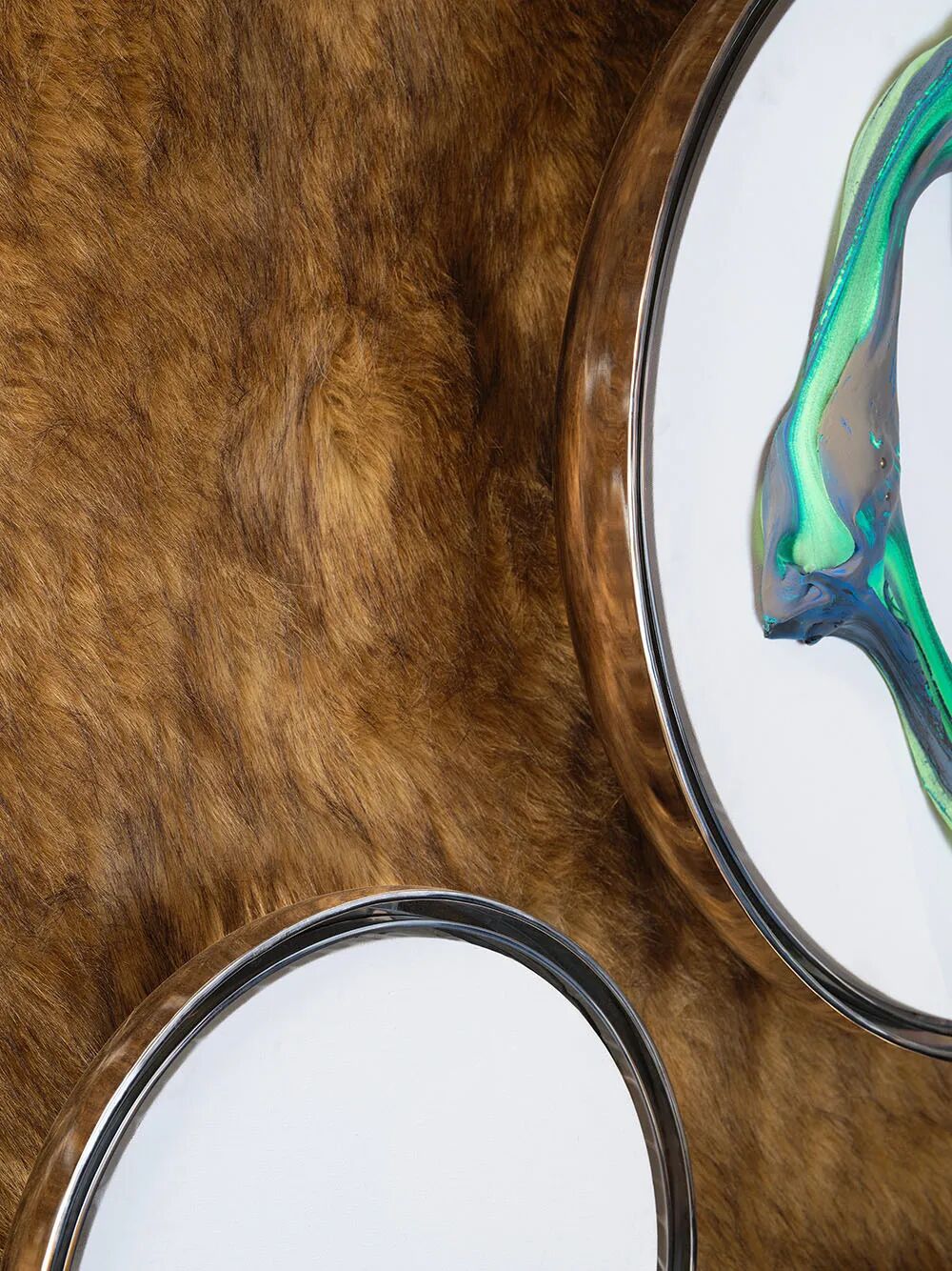 这些画作由轻质黏土即兴揉制成型,再借用文物修复的技法将表面固化,介于平面手绘与立体雕塑之间。它们本身也似灵感的种子,将一瞬间迸发的流光凝结起来,随季节的交替、心境的变化和新材料的研发,不断更新画框里的内容。