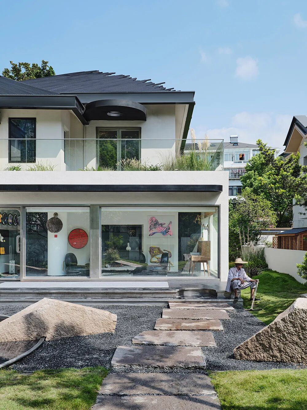 维特根斯坦说过,“我要贴在地面前行,不在云端跳舞。”项目恰好占据着一亩地(≈666m2),从设计构思到落地完成历时一年,室内总面积近250m2,遵从平实的功能叙事和局部微改造,相比之下大得多的户外庭院反而是过程中最花精力的部分。