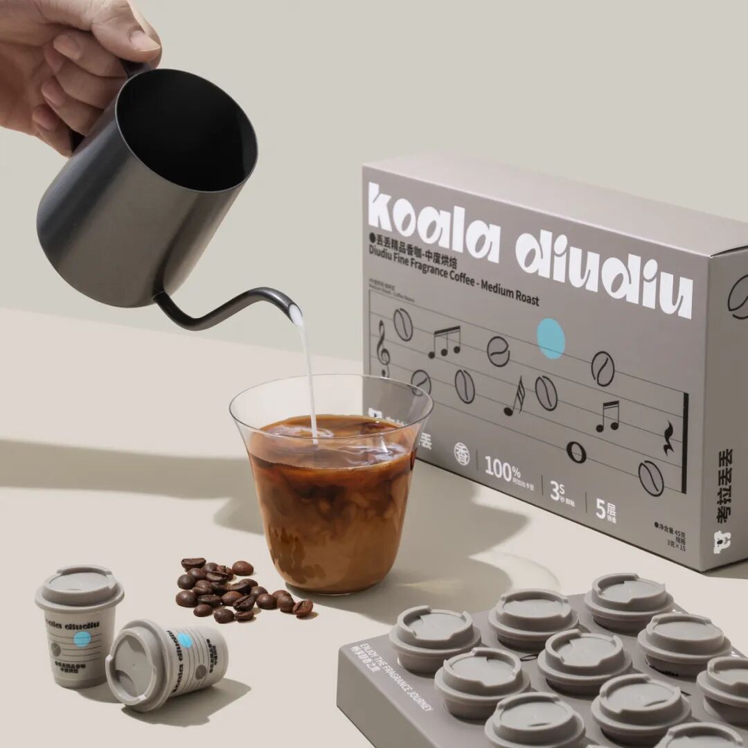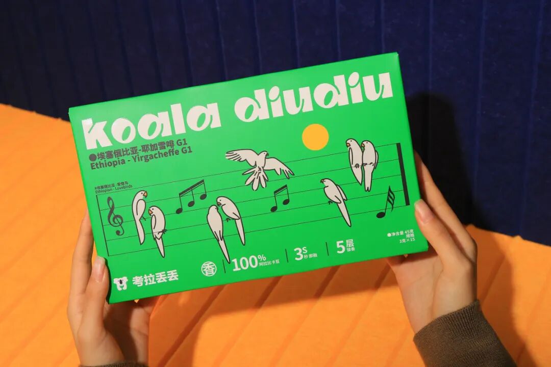 Koala Diu Diu is a fresh fruit coffee brand from Yunnan, China. It has two product lines of fruit tea and coffee.The brand has always encouraged people to live a relaxed and happy life, throwing away trouble and stress; the founder traveled around the world and selected processed coffee beans from all over the world. These are the sources of creativity. Combining music and birds to create, the notes dancing in the score are replaced by birds from various countries, such as Ethiopia-lovebirds, Brazilian toucans, Honduras-Amazon parrots. After work, relax and taste delicious food from all over the world.