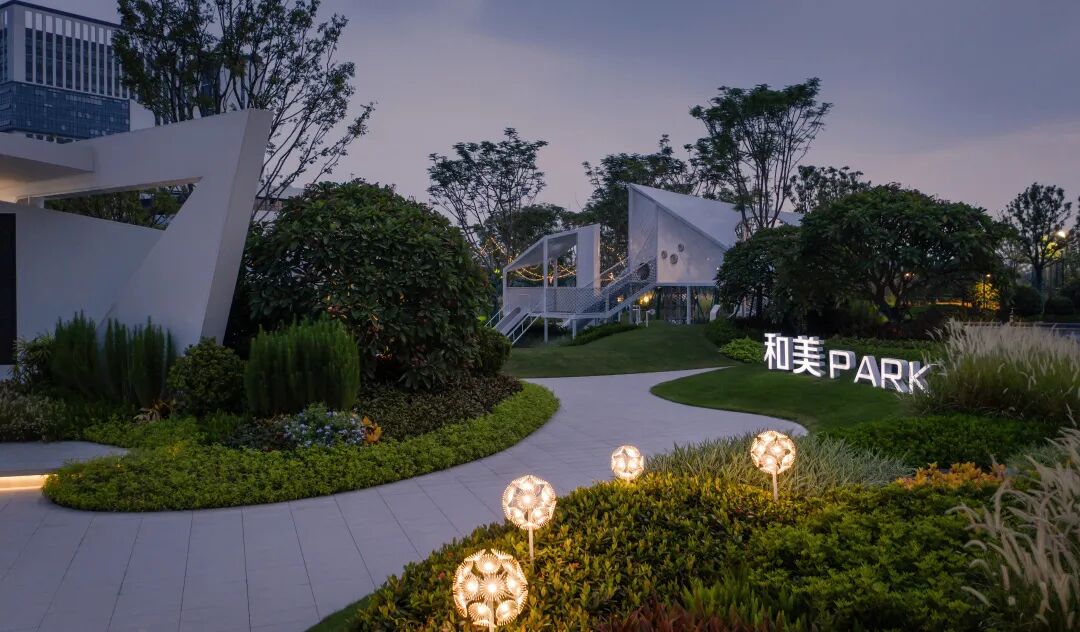 企业品牌展厅与公园空间的结合,将美的置业维G健康社区价值设计体系融入空间设计,助力企业品牌的传播。