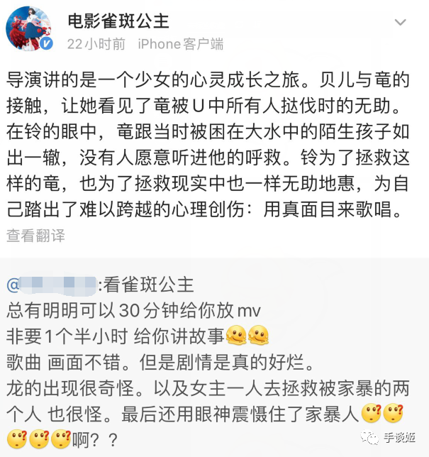 如前文所说,《雀斑公主》上映后确实有很多观众表示不理解。官博不免要向影迷解释有关《雀斑公主》的问题,于是有了和网友在微博“对线”的场面: