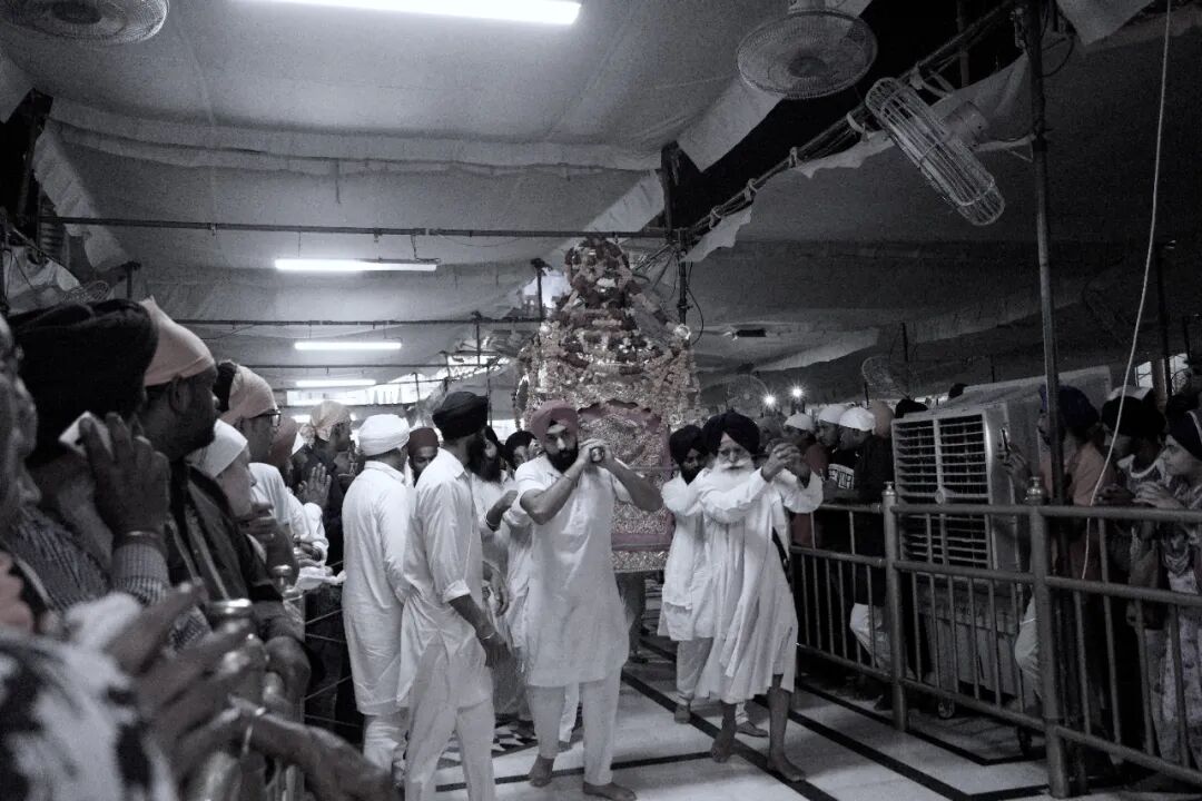 信徒们正在擦拭金庙的大理石地板、裹金的栏杆,为金庙的一尘不染辛苦劳作。