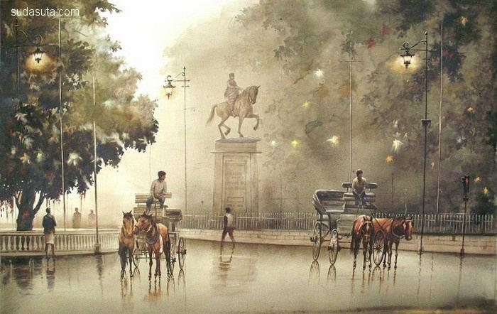 /印度水彩画家Arup Lodh风景绘画作品欣赏