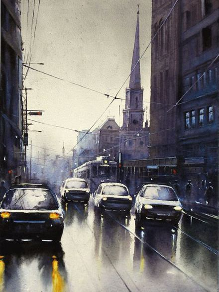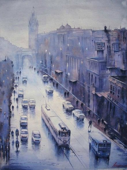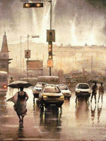 印度水彩画家Arup Lodh 带来的一组城市绘画系列,以朦胧的笔触刻画了雨后的城市,透露出柔软的城市印象。