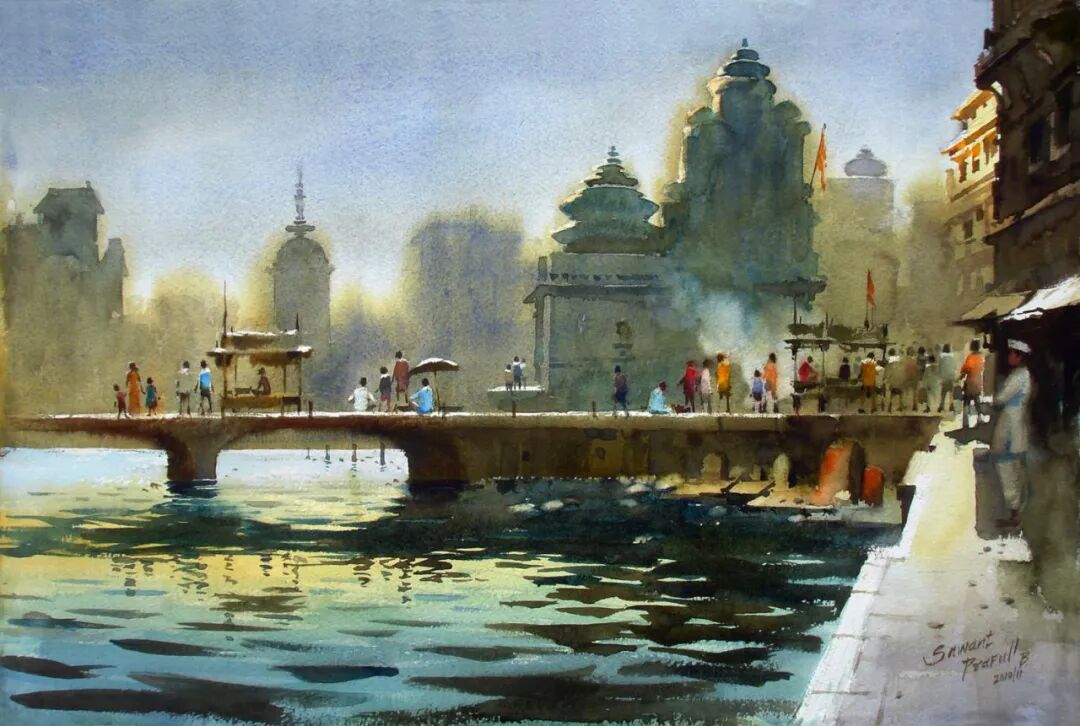 Prafull Sawant在纳西克市工作了10年,作为一名艺术家和艺术讲师,在那里他全身心地投入于写实风格的大尺幅风景水彩作品创作。