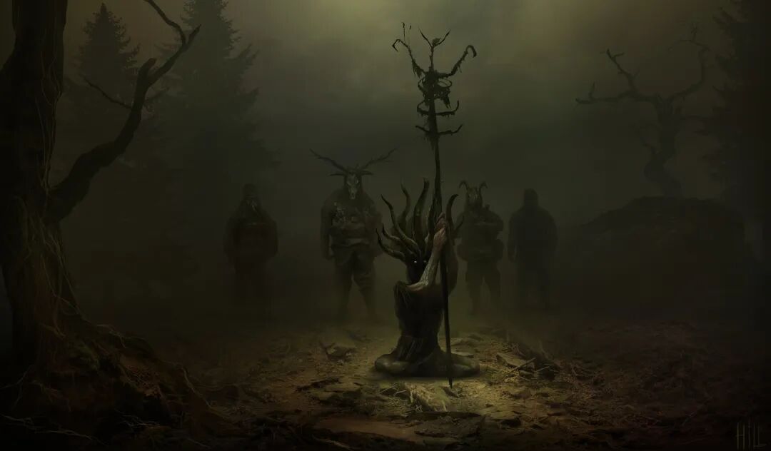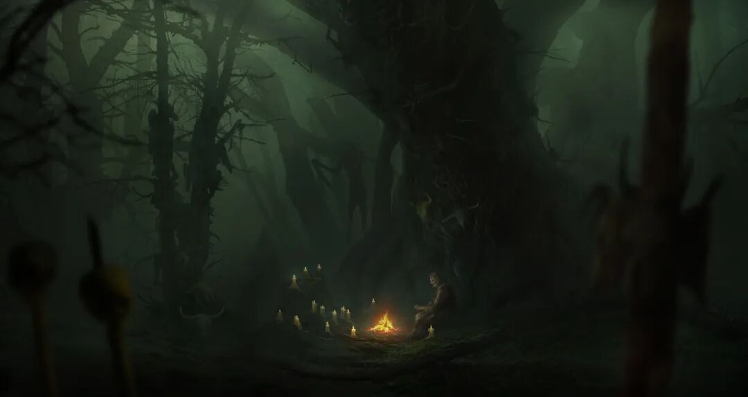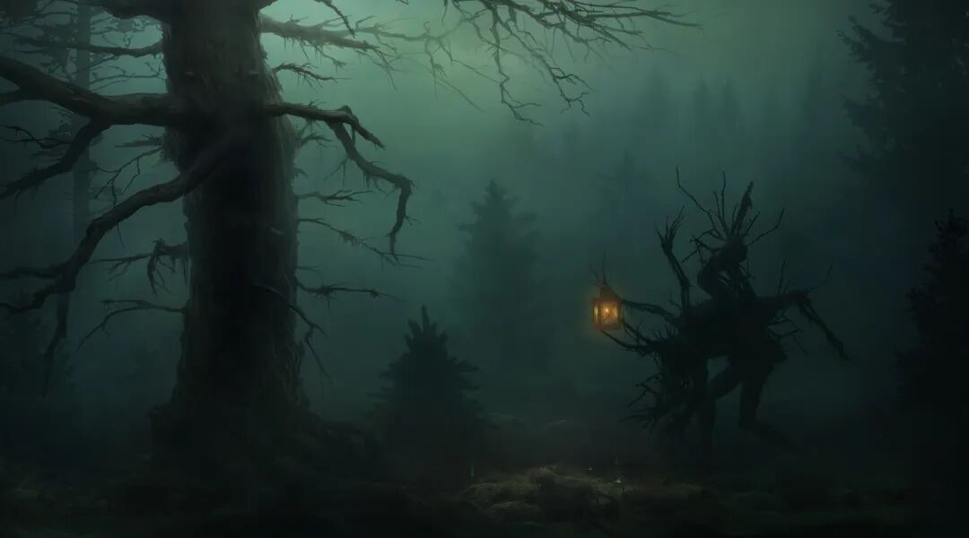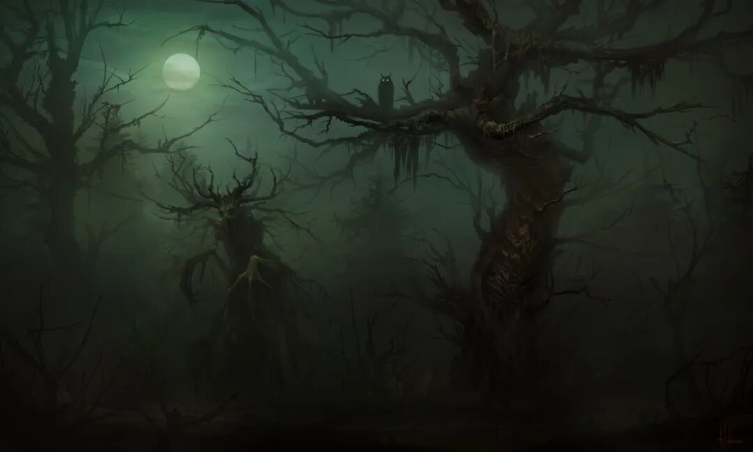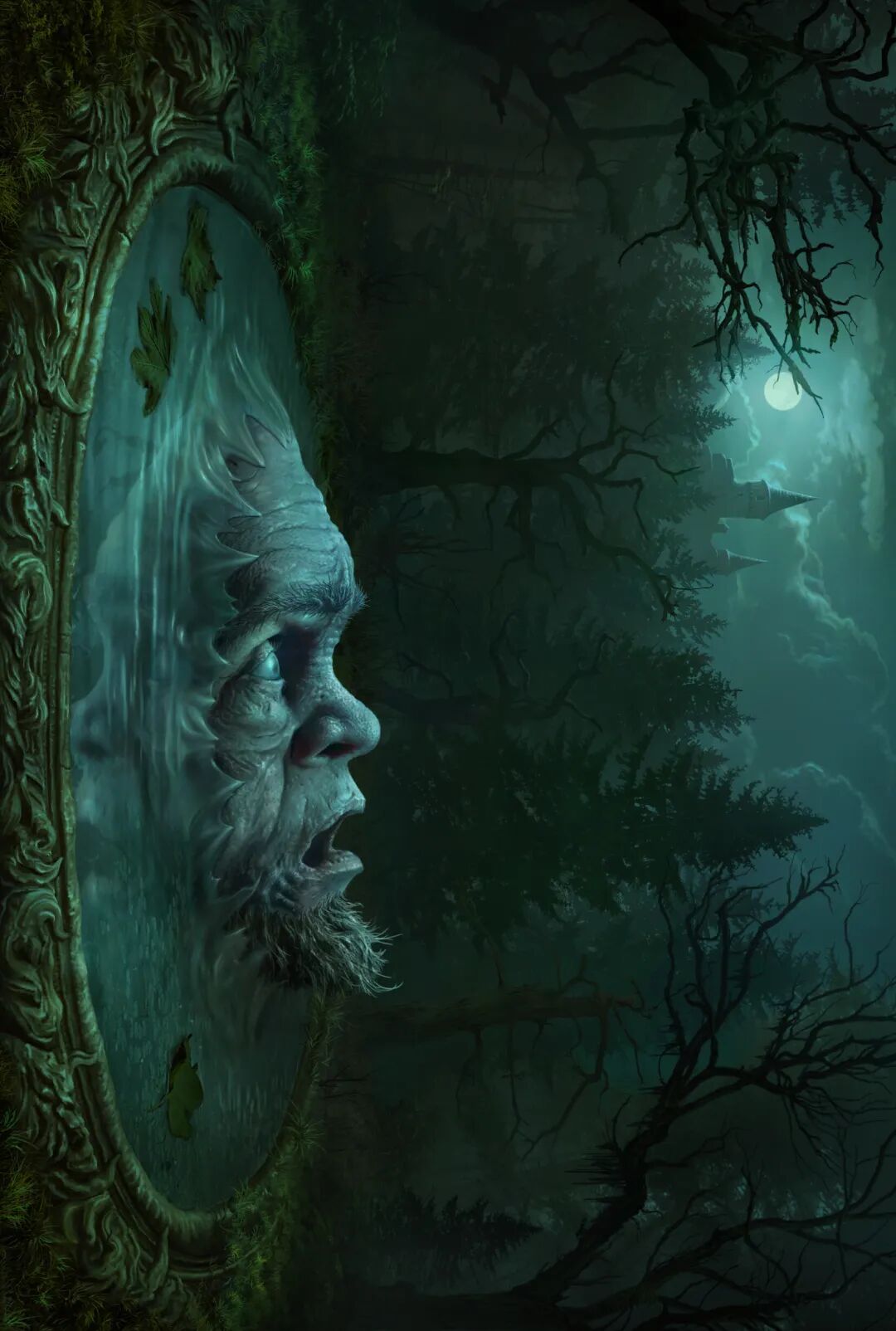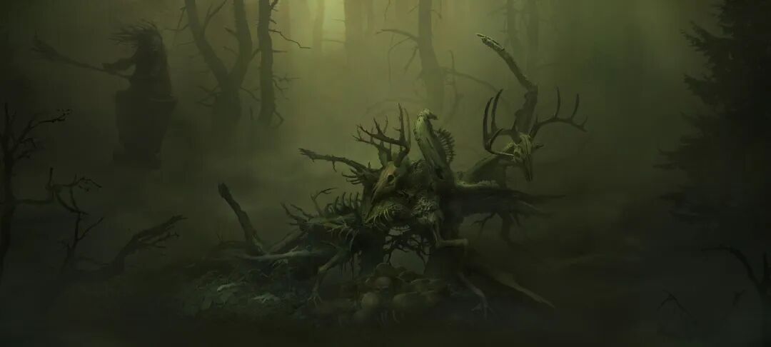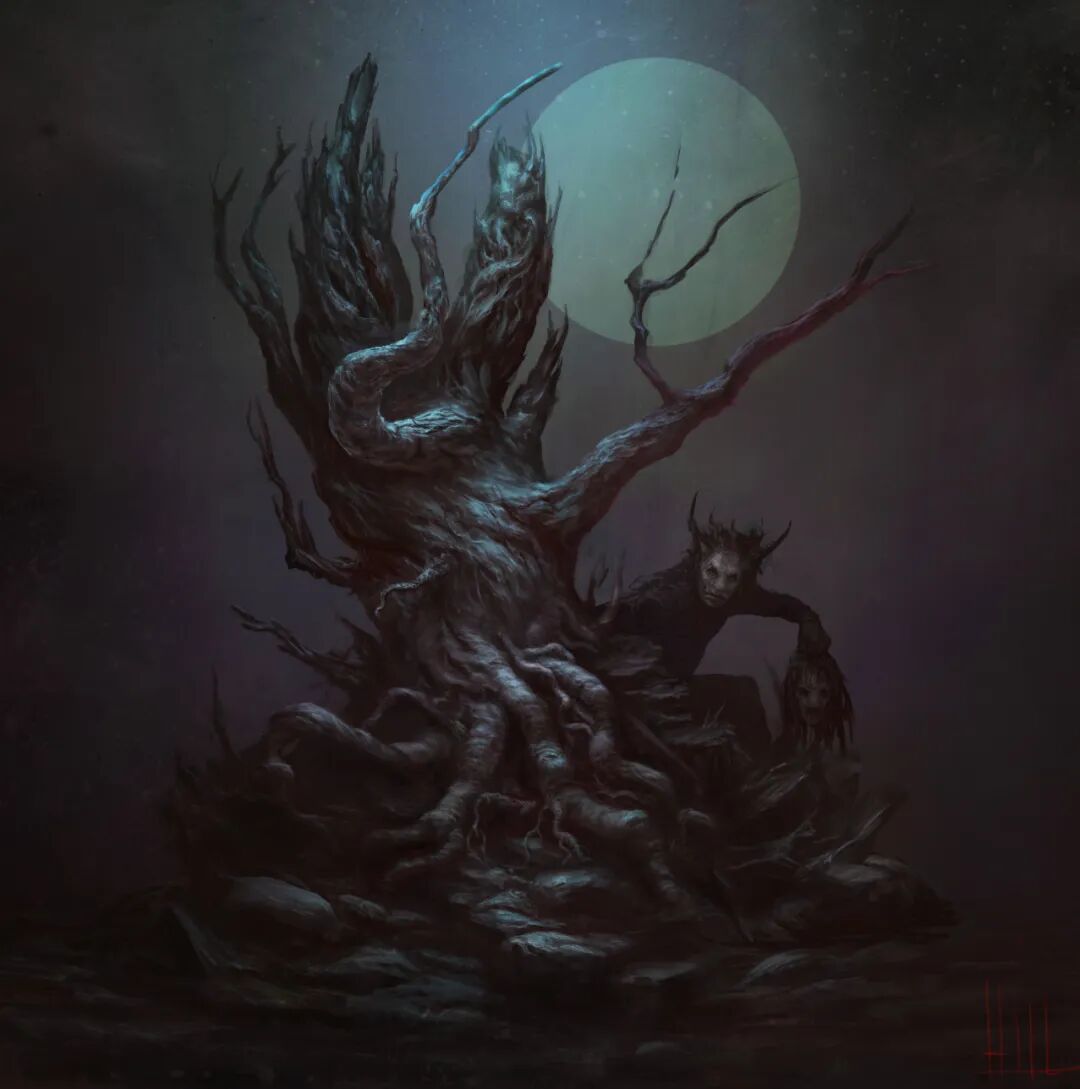 Yuri Hill的作品以黑暗幻想为主,他十分擅长渲染阴郁恐怖的氛围,深邃又雾气重重的林中仿佛隐藏着可怖的怪物,让人身临其境般地感受到一种不可名状的恐惧。