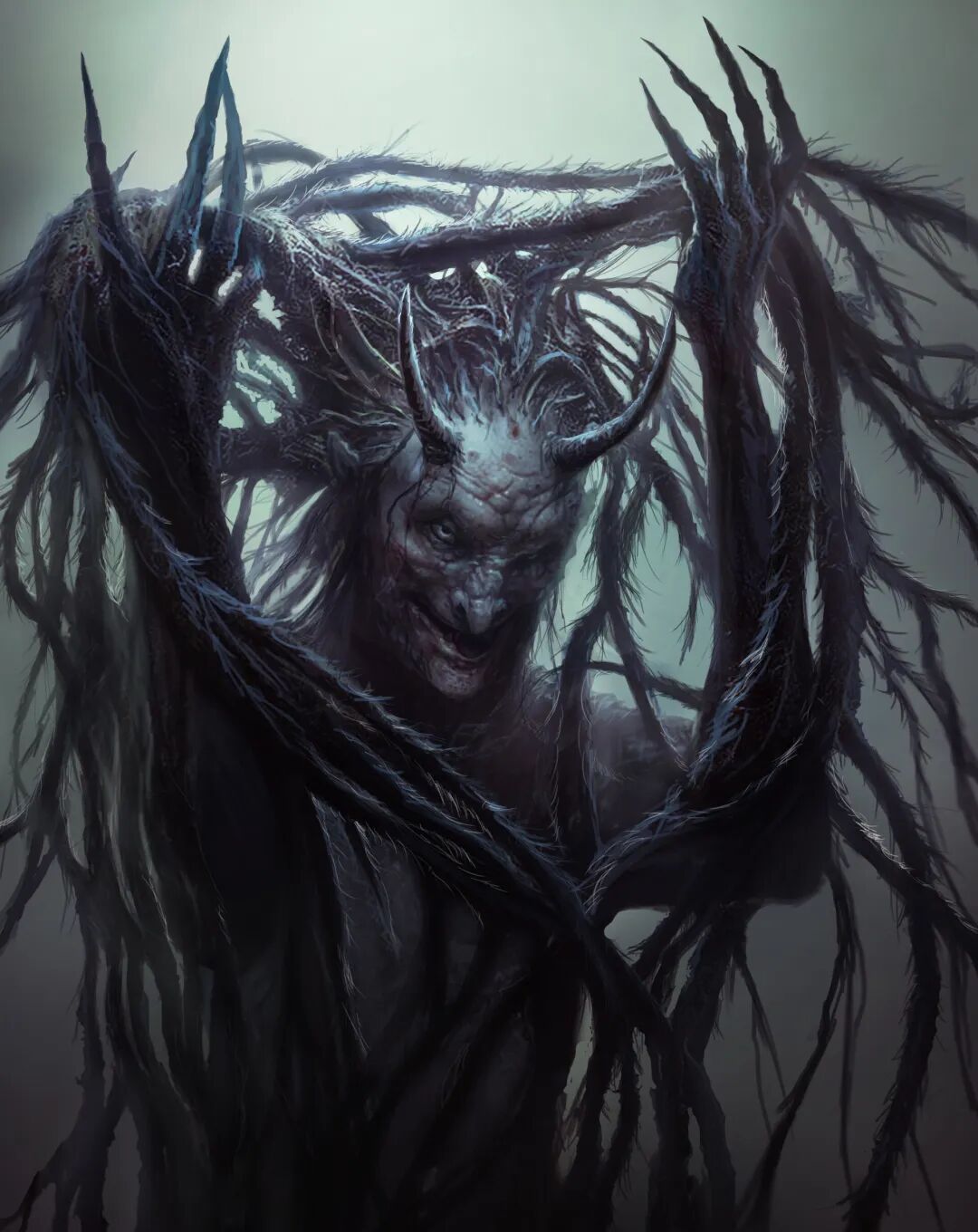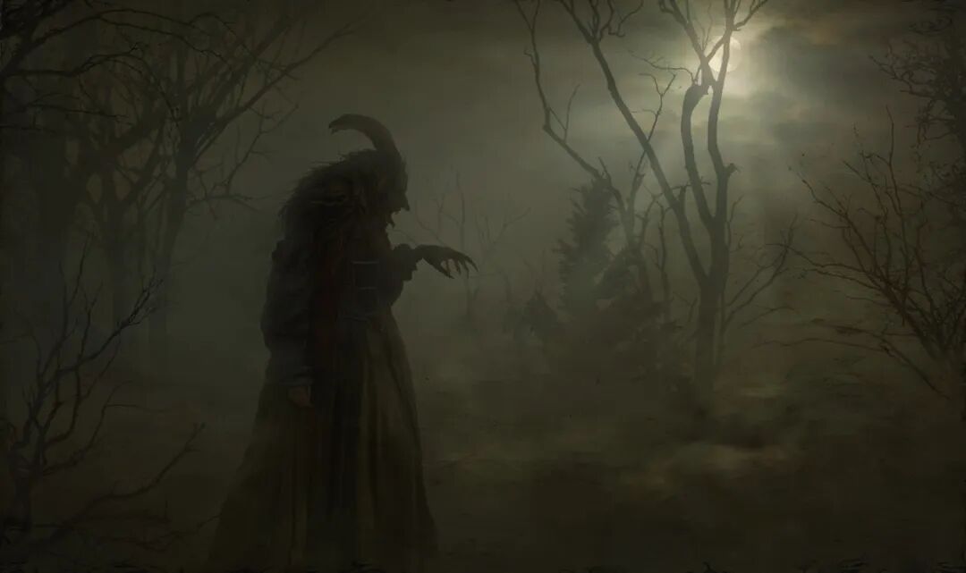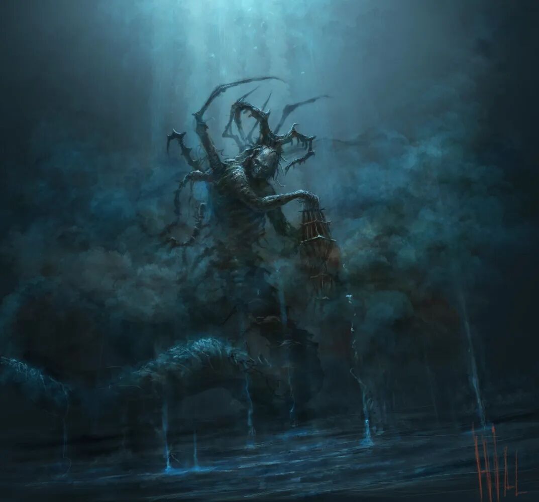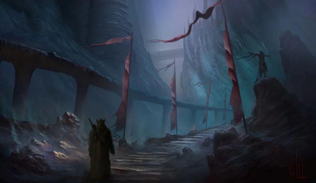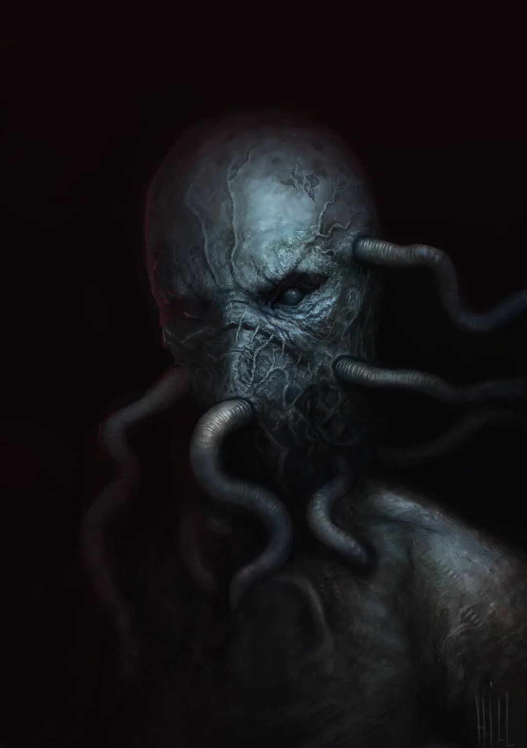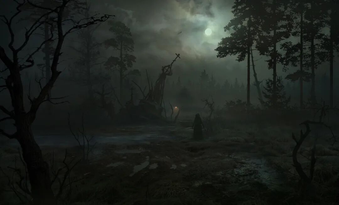 Yuri Hill的作品以黑暗幻想为主,他十分擅长渲染阴郁恐怖的氛围,深邃又雾气重重的林中仿佛隐藏着可怖的怪物,让人身临其境般地感受到一种不可名状的恐惧。