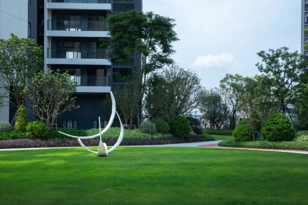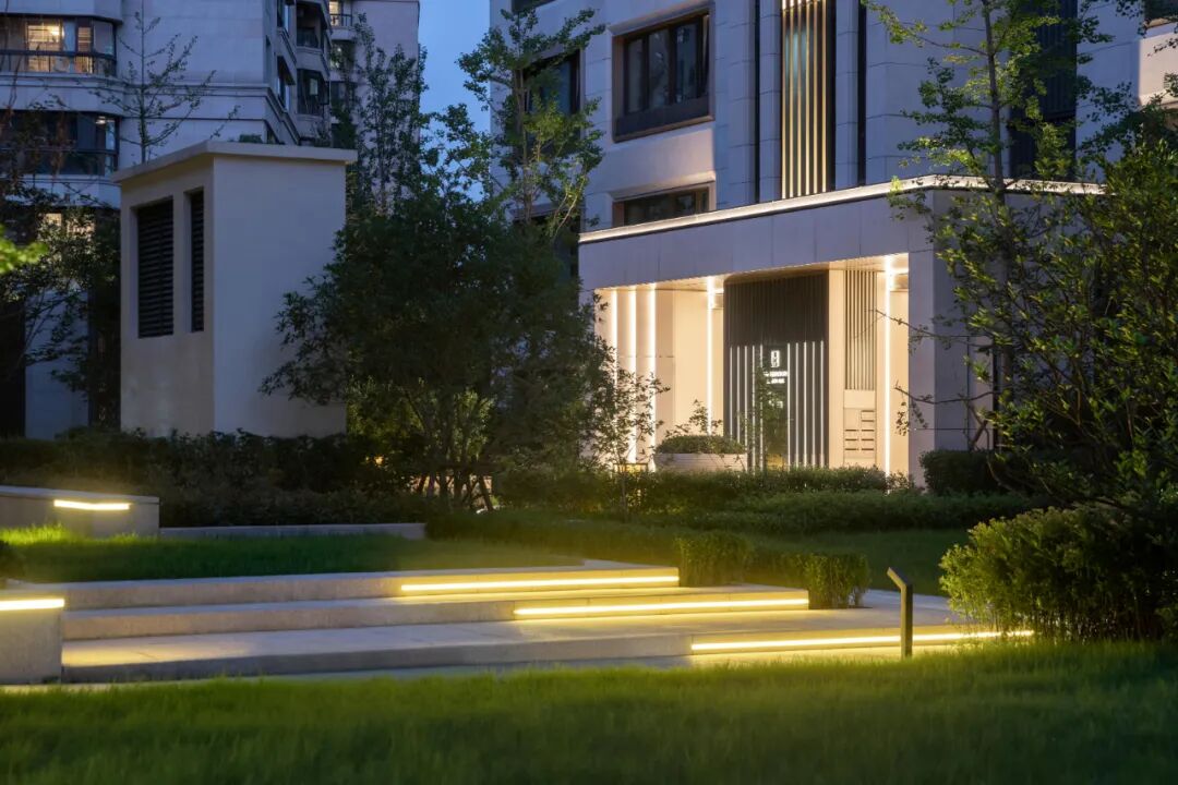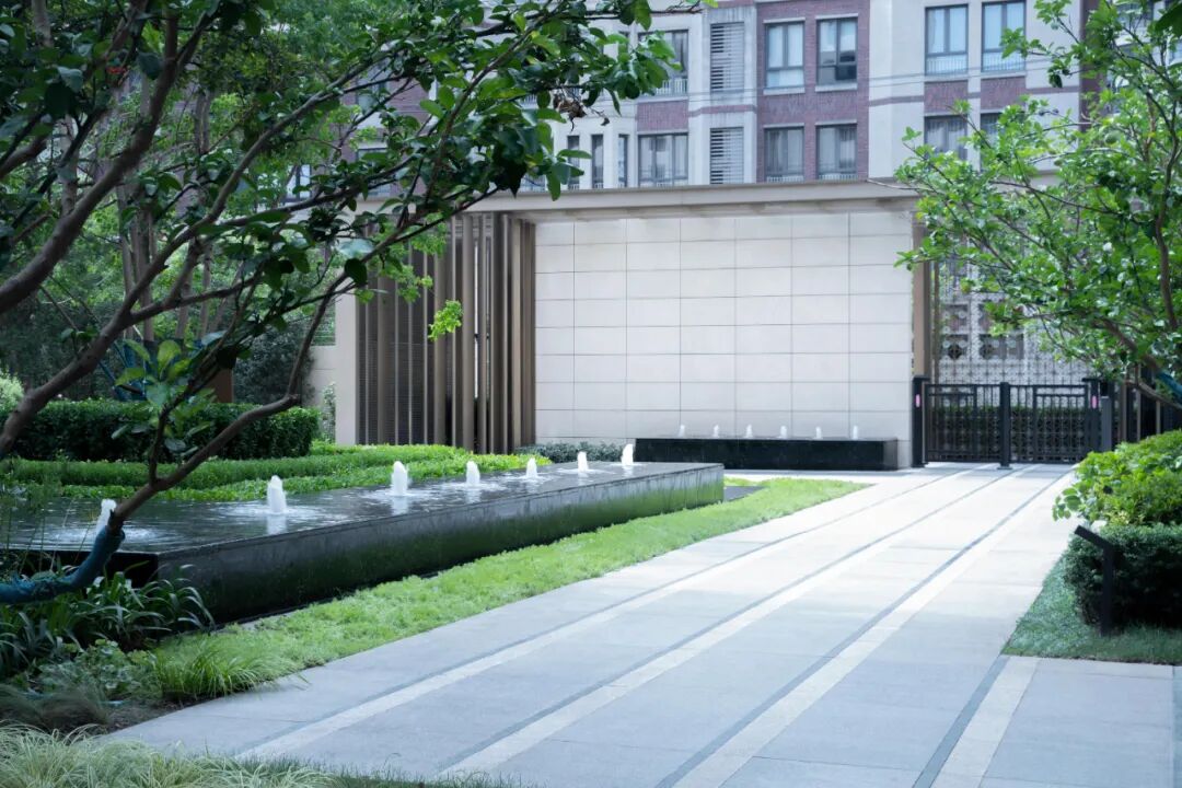 于自然中感受艺术的内核。项目入口处以流水花池烘托环境氛围,并在视线直击的入口中央利用造型背景墙形成视线落点,主入口呈现尊贵的迎宾仪式,表现出对人们“归家”这一行为的重视,为人们“回家”动态增添了更多的期待与欣喜。