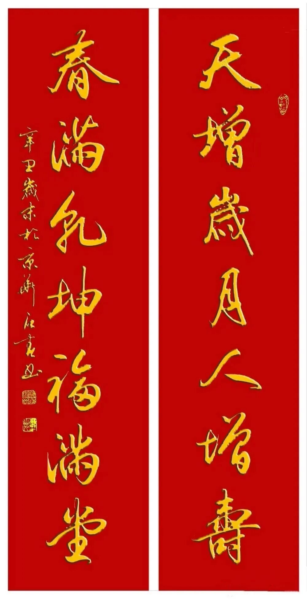 右:清 乾隆《富贵三春景,平安两字金》对联