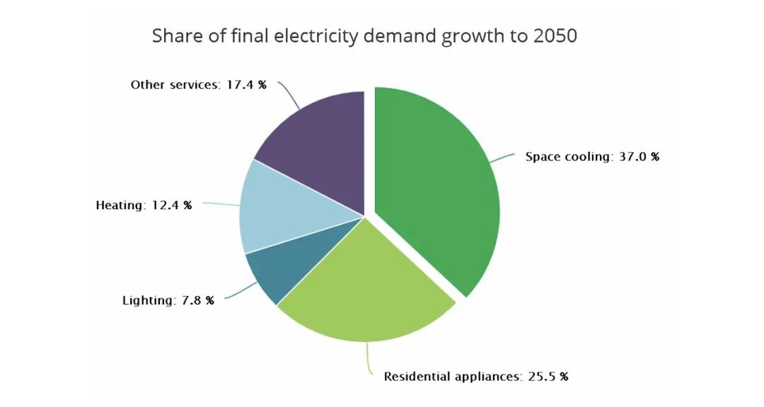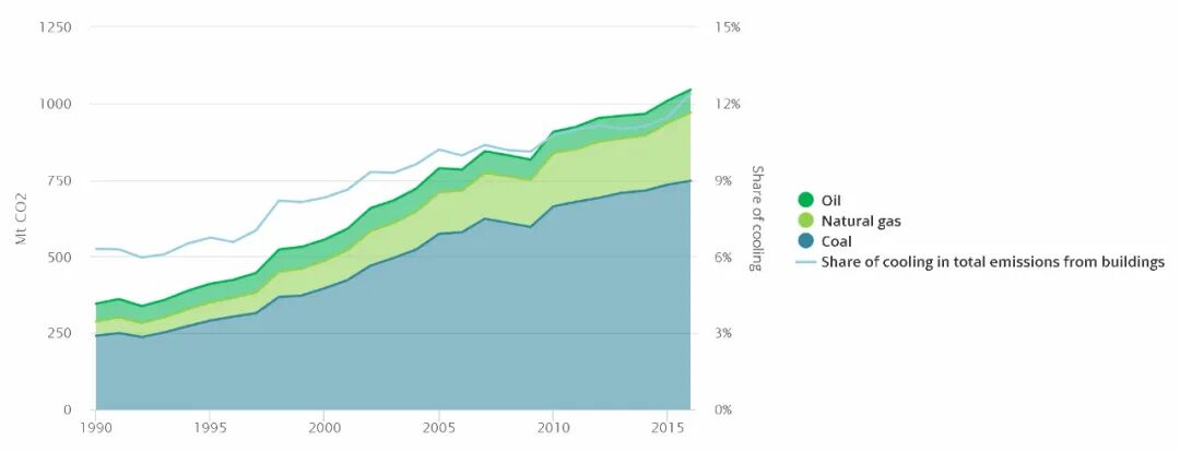 但实际上,空调在给我们带来舒适的同时也给环境带来了巨大的负面影响:仅2016年,它便造成了1045公吨的二氧化碳排放。 根据国际能源署的估计,到2050年,制冷在全球总能源需求中的占比将攀升到37%。
