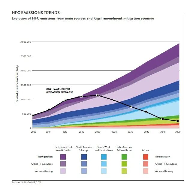空调运作所依靠的氢氟烃(HFC)制冷剂对环境尤为有害。虽然氢氟烃只占温室气体排放量的1%,但它的破坏功力却是二氧化碳的数千倍。