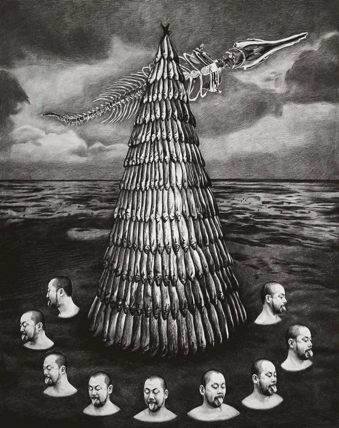 苍鑫,萨满系列,宣纸炭笔,250×200cm,2004