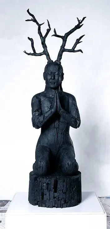 雕塑炭,木材、麻布、钢材、混合颜料