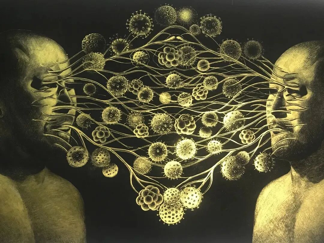 苍鑫,交叉感染共同体,宣纸设色,97×71cm,2020