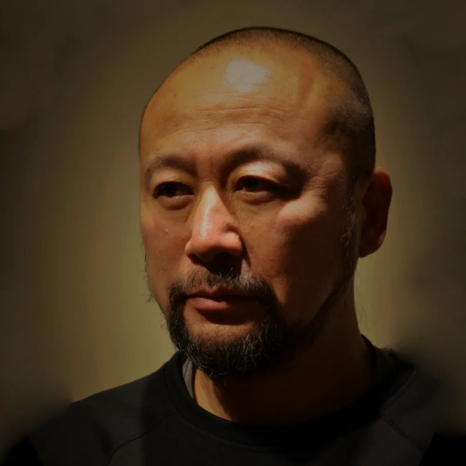苍鑫,1967年出生于内蒙古,满族。1986年至1989年,分别在天津音乐学院、南开大学、天津美术学院学习音乐、艺术和哲学课程,1991年开始绘画。1993年进住北京东村,开始艺术创作人生。苍鑫以行为艺术而知名,虽然早期作品带有西方流派的影响但更注重身体力行、营造现场氛围、强调观者参与创作交流。他的作品构成和旨意并不同于80年代流行的简单表现愤世和反叛,而更多地反映了当下人类现实生存的束缚和焦虑。这一类的代表作品有《病毒系列》《踩脸》《为无名山增高一米》《舔》《洗澡》《身份互换》等等。2002年进入798艺术区进行创作,开始关注和研究中国北方狩猎游牧民族的古老宗教。2004年以后,艺术表达方式发生转变,从行为转向装置、多媒体、绘画、摄影等跨界领域,创作了《奇花异草》《苍鑫神话》《机械装置》《苍鑫的萨满视觉》等,试图从万物有灵的信奉切入,表现人与自然的关系。