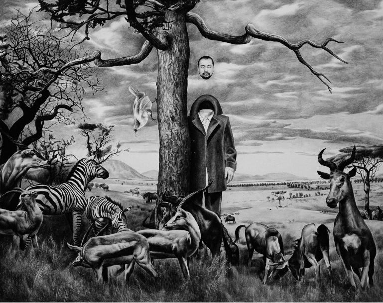 苍鑫,萨满系列,200x250cm,宣纸炭笔,2004