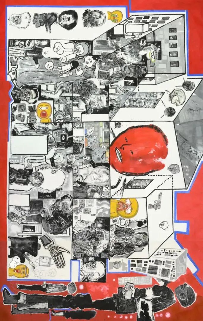 李孝萱《疫疠—2022停滞与摆动》270x434cm 2022年