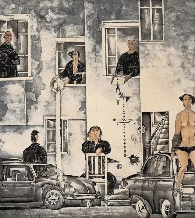 李孝萱《都市,缪的车与躺着的人》193x179cm 1991年