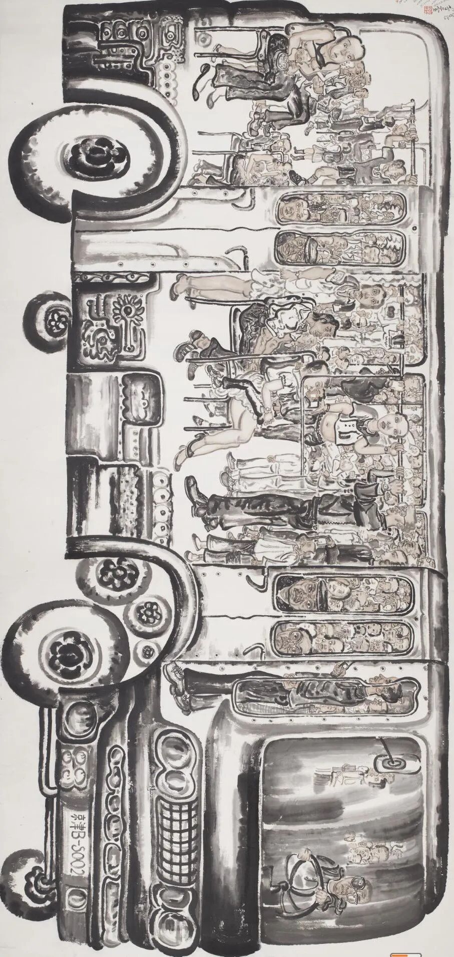 李孝萱《大轿车》 180x384cm 纸本设色 1996年