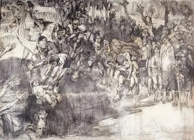 李孝萱《赤裸的喧哗》179x400cm 纸本设色 1995年