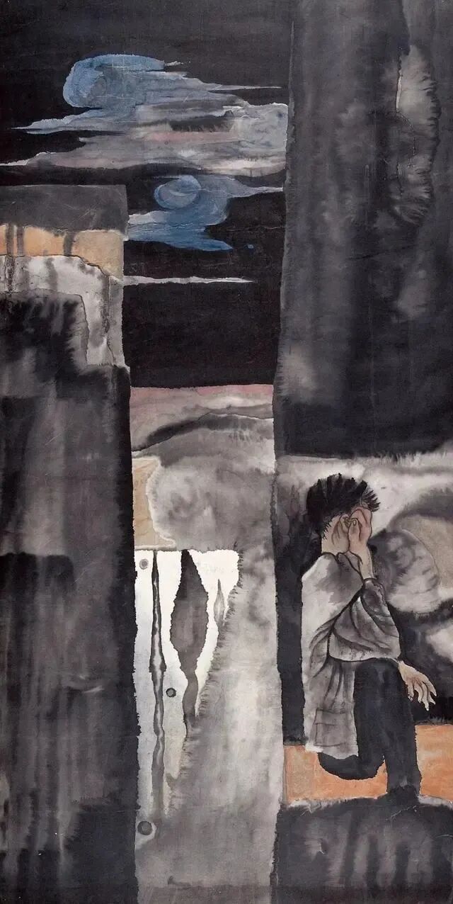 李孝萱《夜,木殁的人们》 139x70cm 纸本设色 1990年