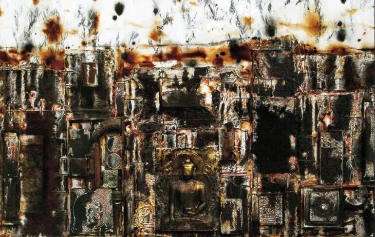 黄钢,《佛之手》100×73cm,综合材料