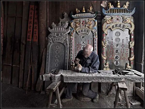 「舒代友,1937年12月出生,16岁开始学习打碑。舒代友雕刻手艺精湛,雕刻出的图案栩栩如生。他取财讲究道义,不收高价,找他打墓碑的人络绎不绝。」