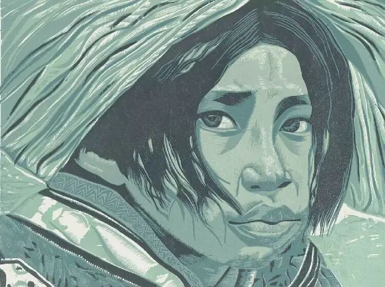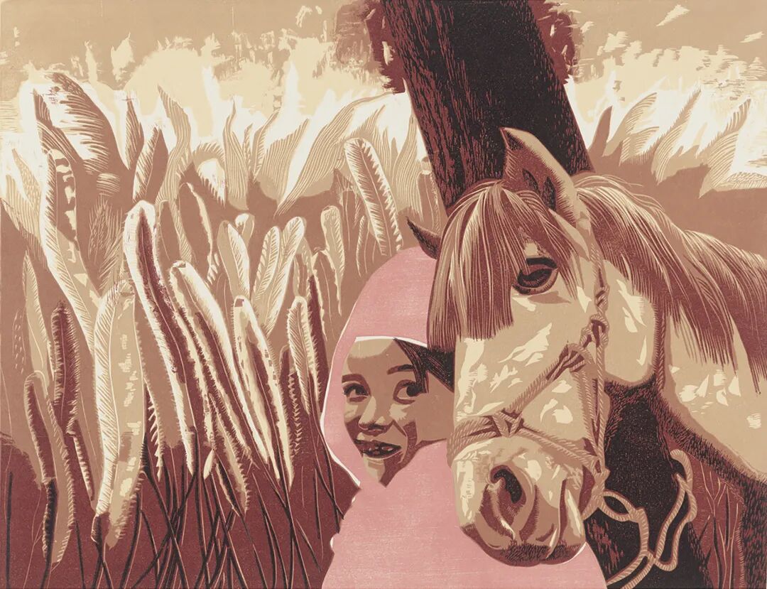 王华祥,《和冬青树一样高的秘密》,黑白木刻,45x53cm , 1991