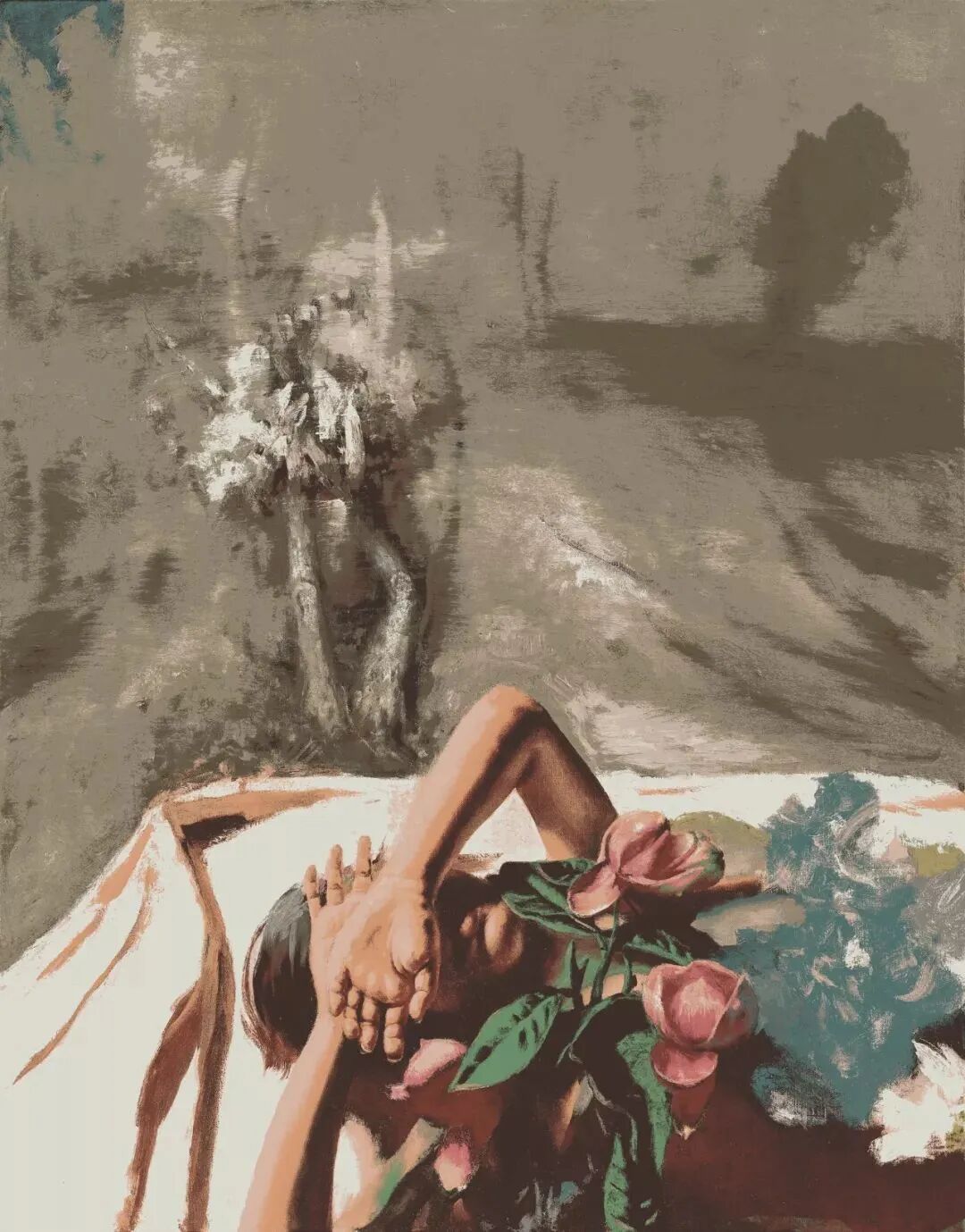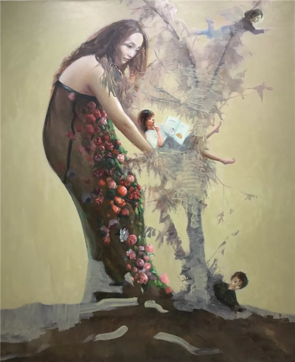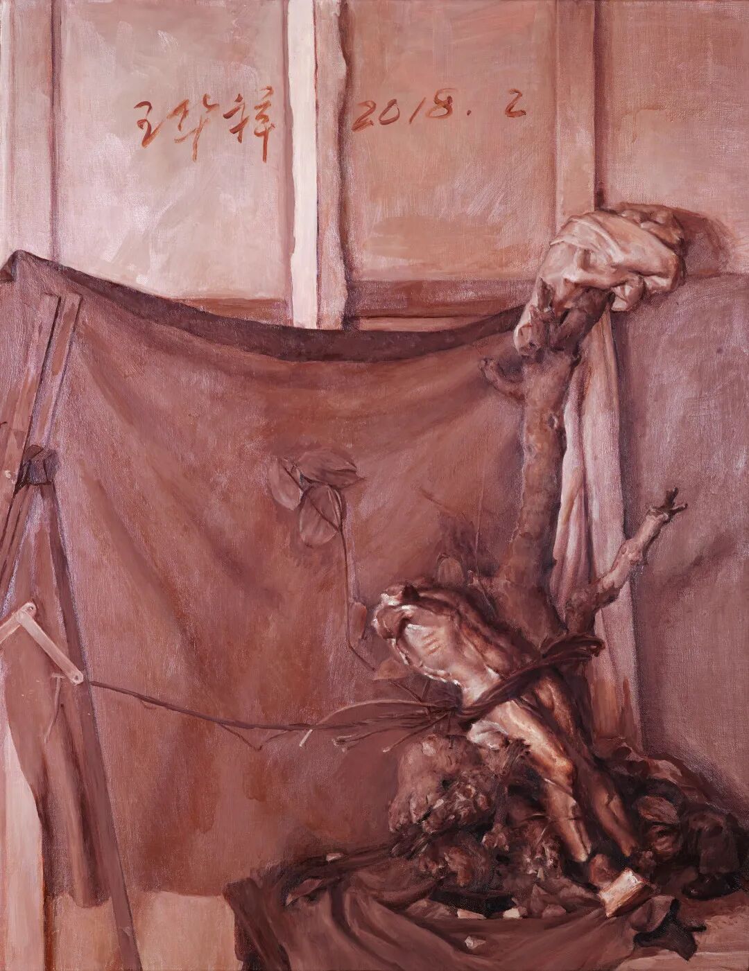 王华祥,《风往回吹—接近真理的花可以长开不败》,布面油画,90x70cm,2017