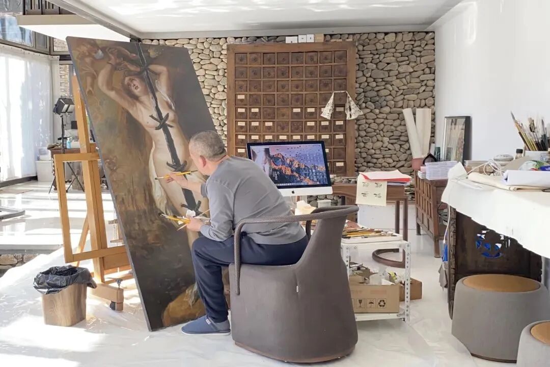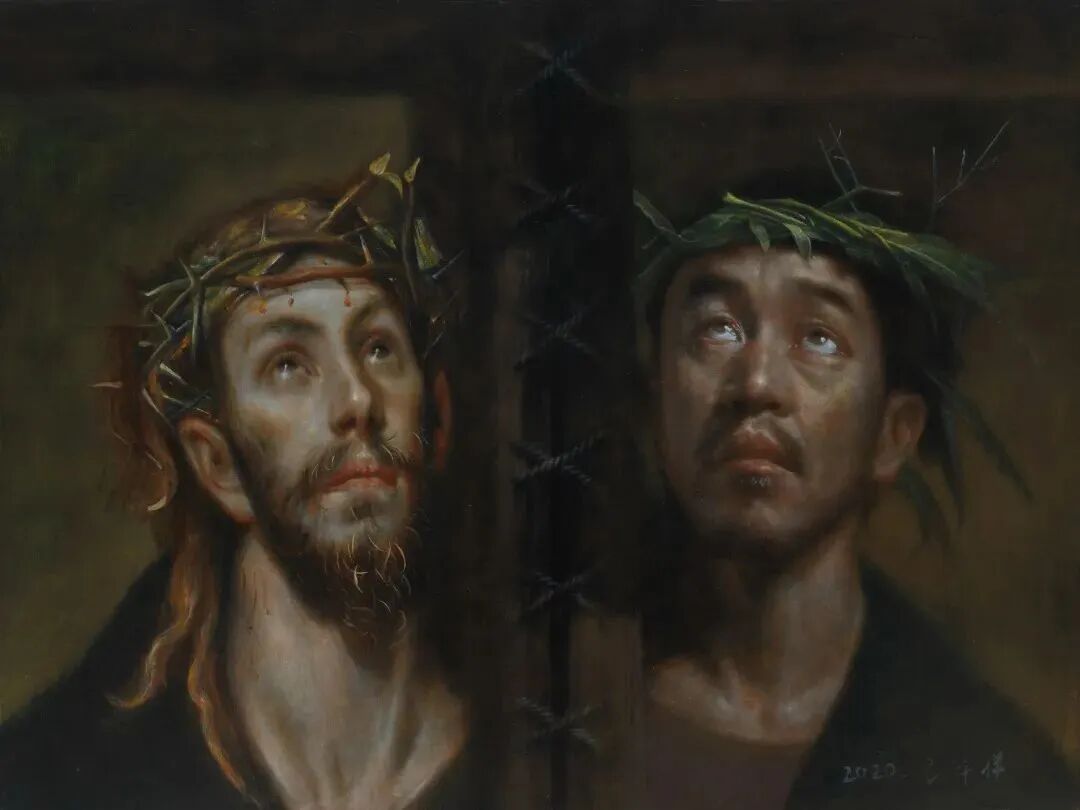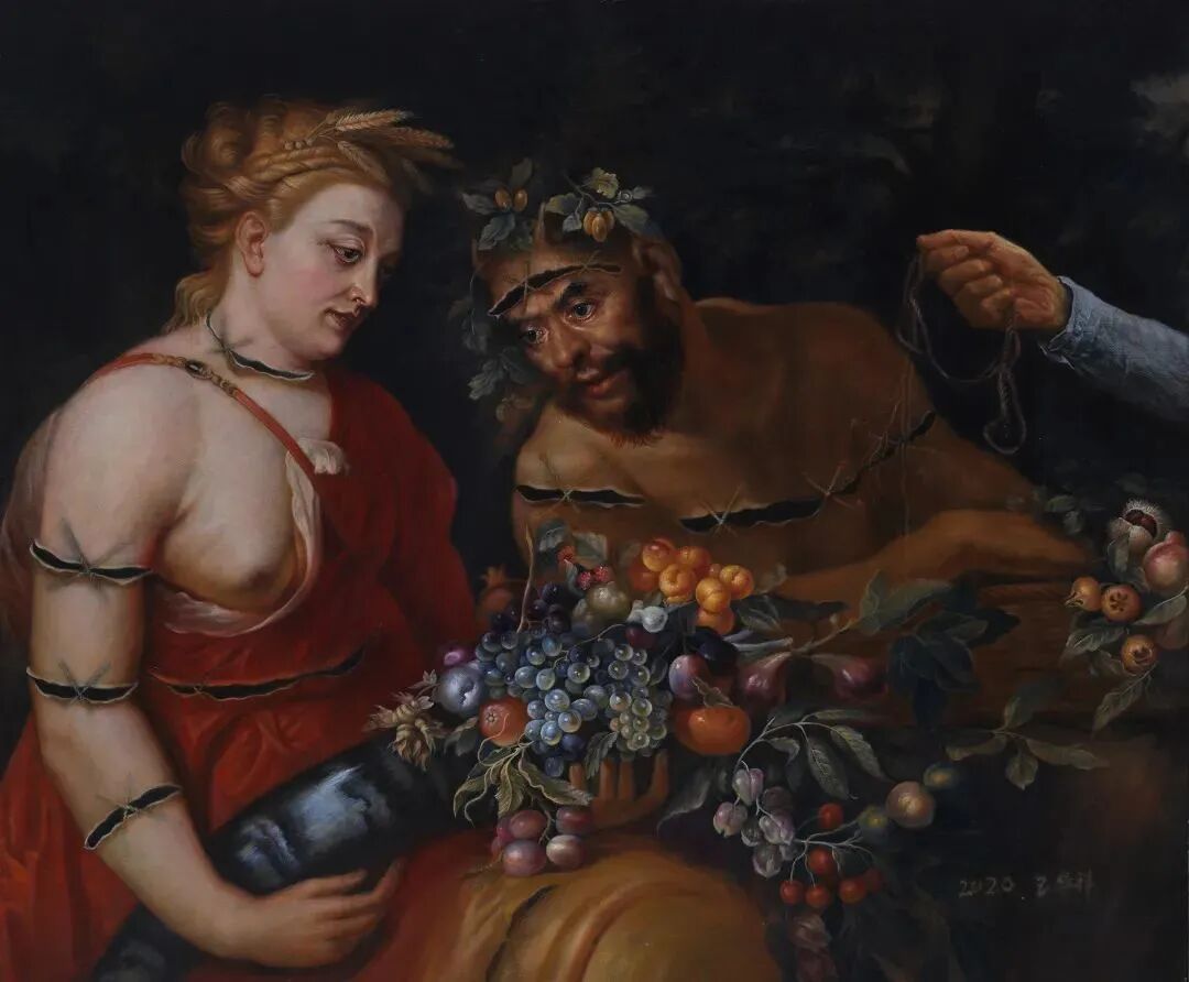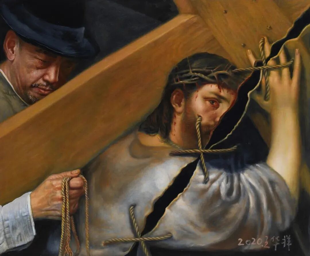 王华祥,《锔瓷》一,布面油画,120×160cm,2020