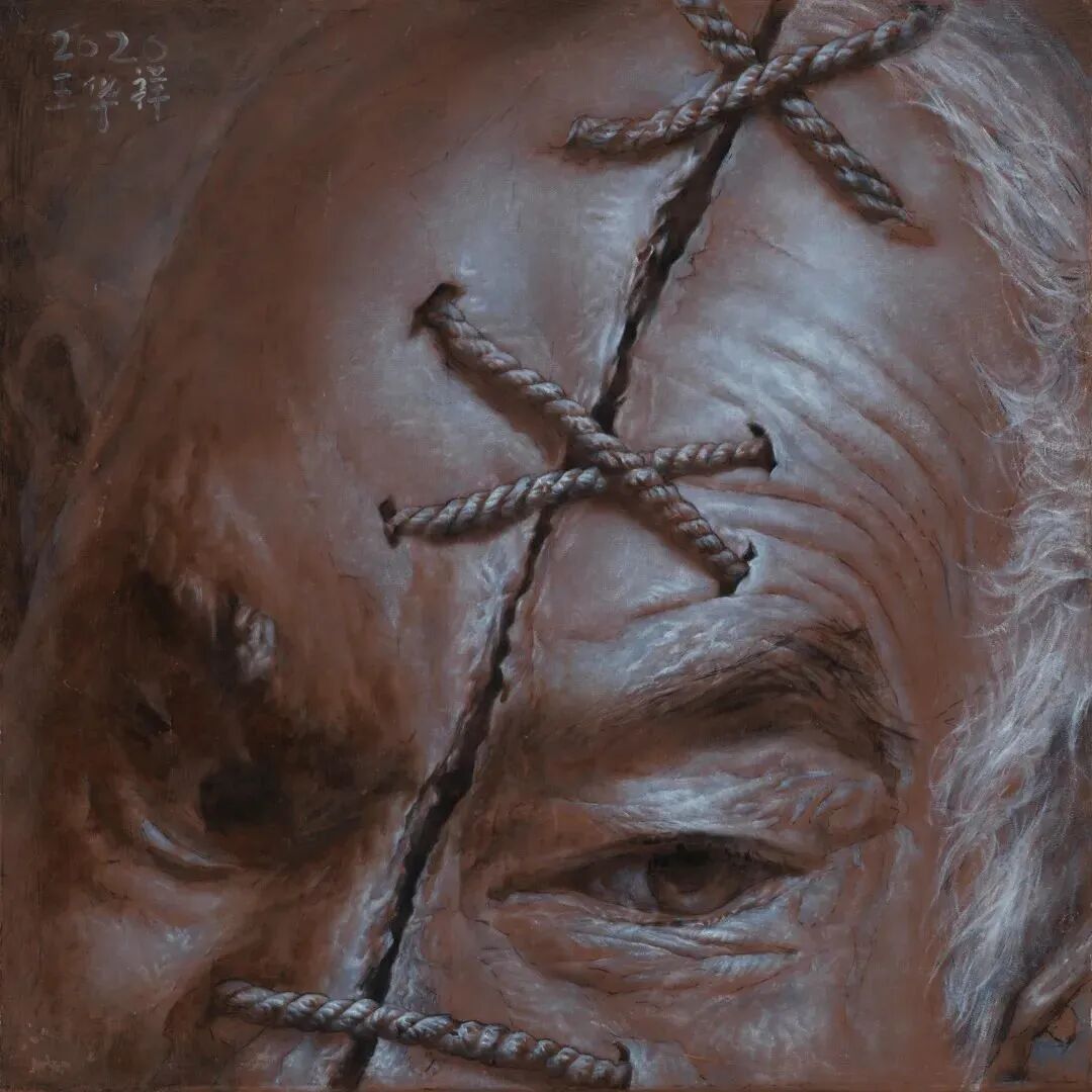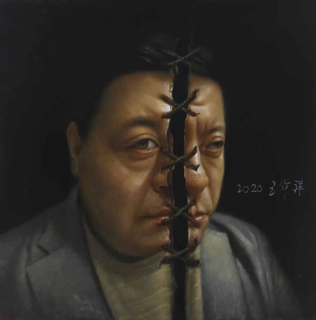 王华祥,《锔瓷》四,布面油画,120×120cm ,2020