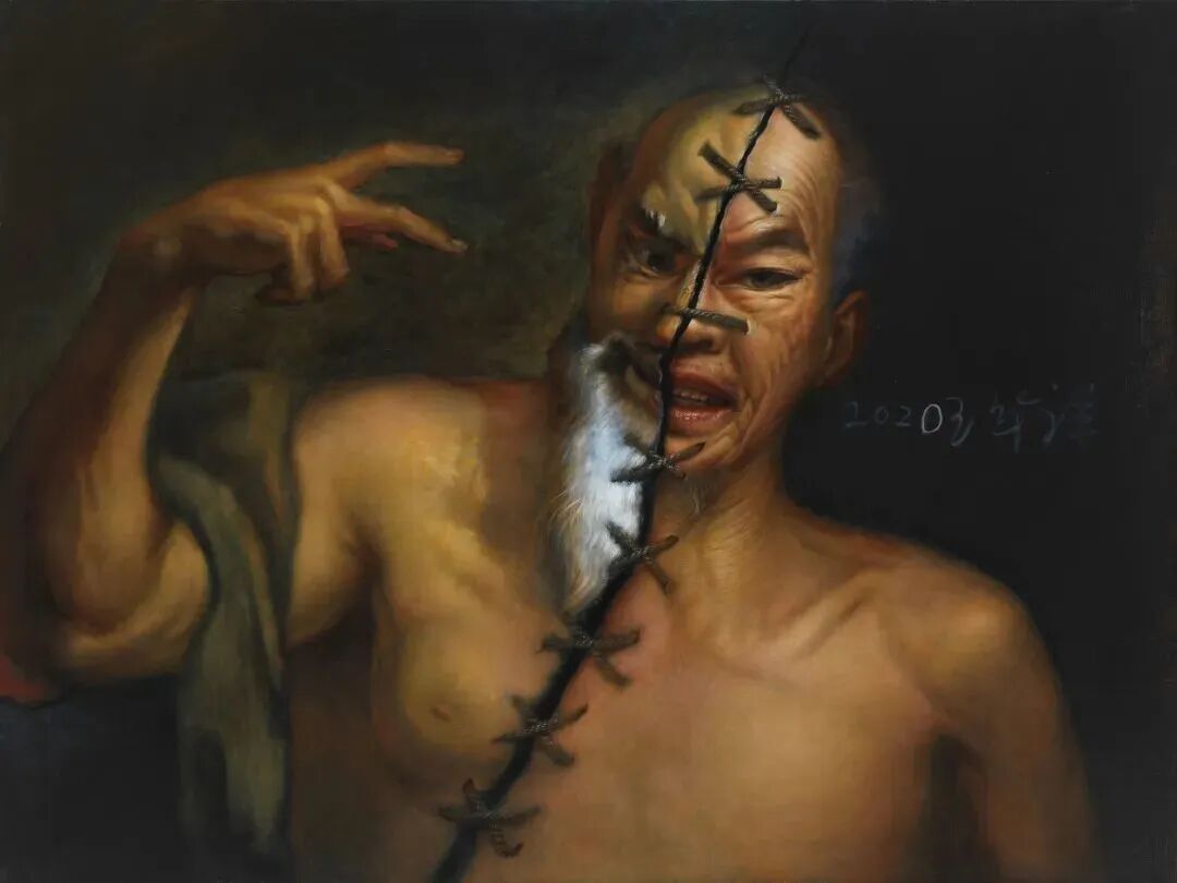 王华祥,《锔瓷》十,布面油画,100×120cm,2020
