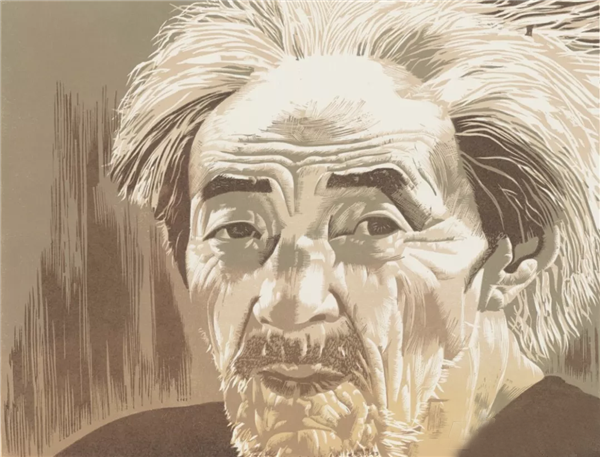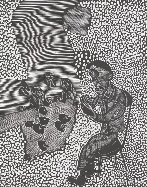 王华祥,《二舅》,黑白木刻,33.7×39Ccm,1990