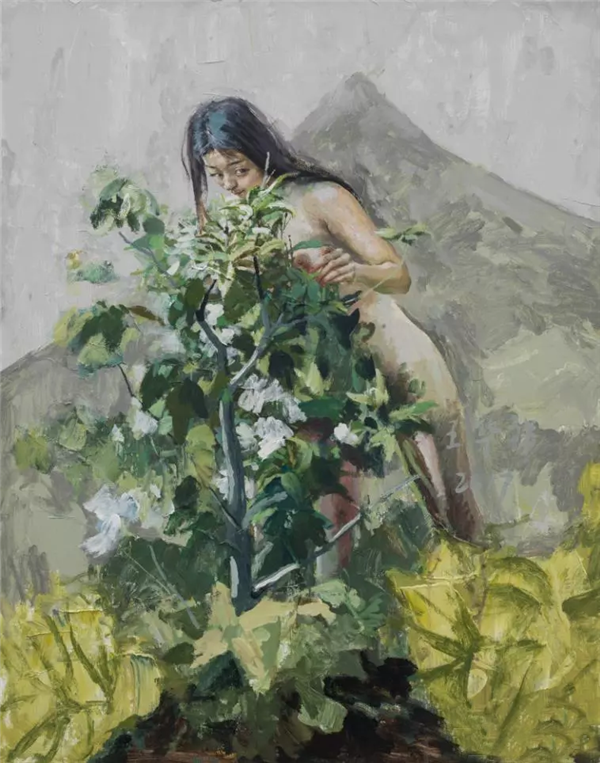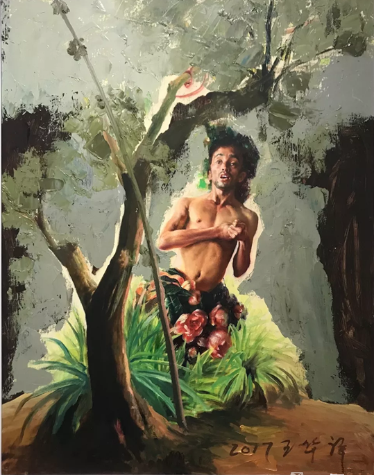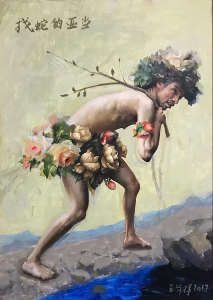 王华祥,《风往回吹——找蛇的夏娃》,布面油画,70×50cm,2017