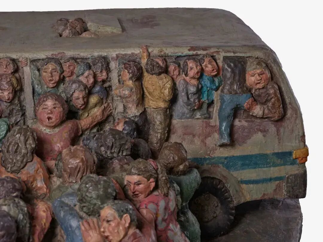 李占洋,《挤公交车》,玻璃钢, 205×210×90cm,2002