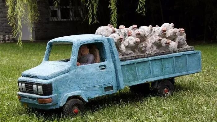 李占洋,《一车猪》,玻璃钢,105x48x63cm,2003