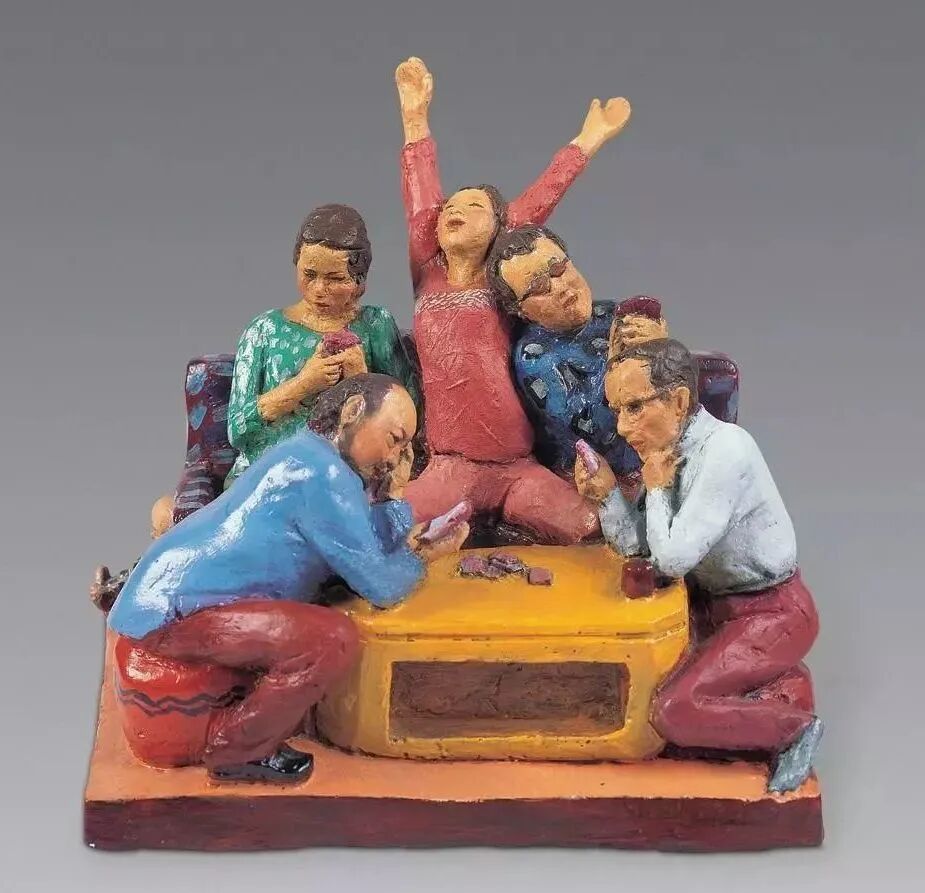 李占洋,《打麻将》,铸铜,28x23x33,1999