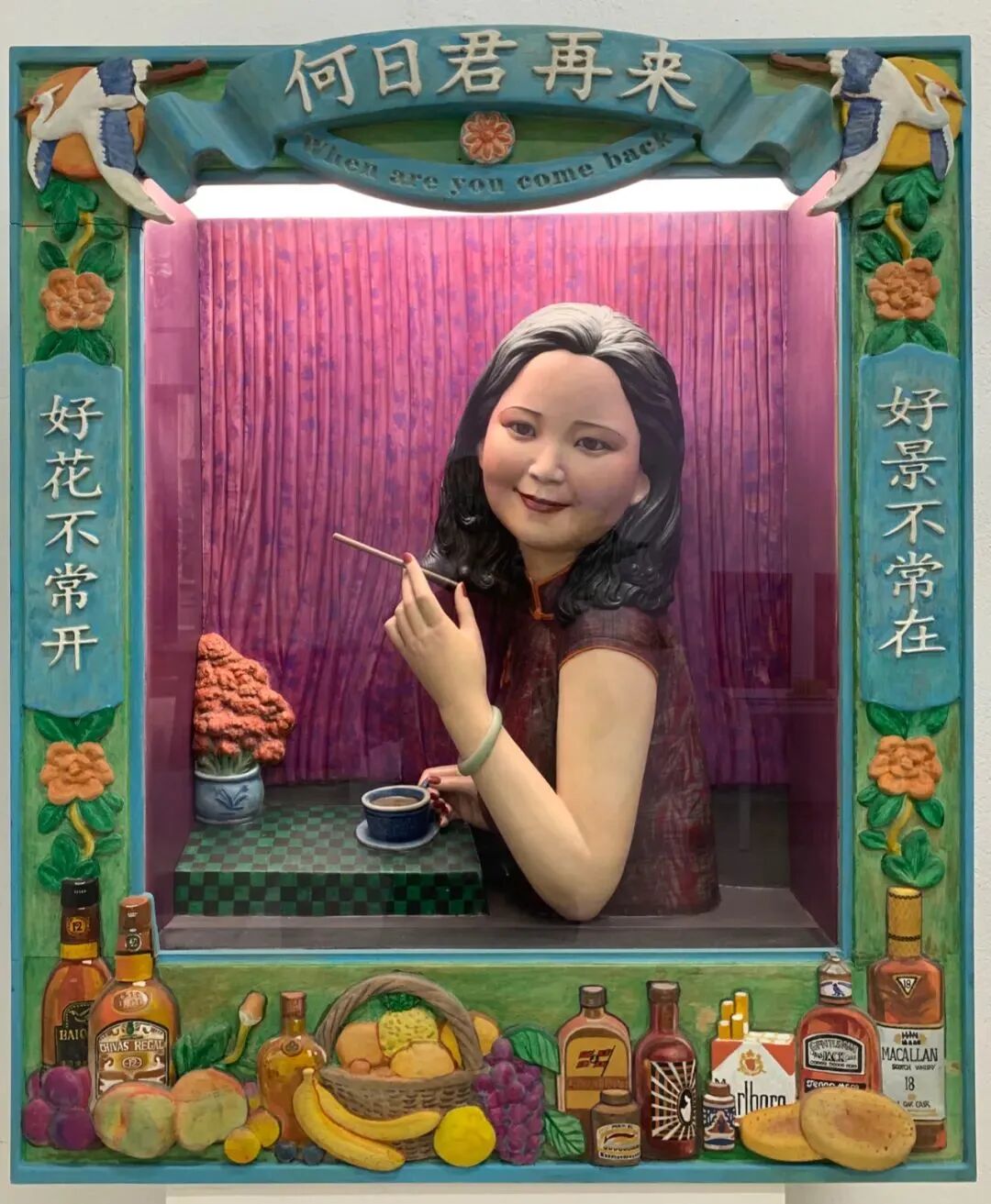 李占洋,《何日君再来》,玻璃钢、木,76x91x29cm,2020