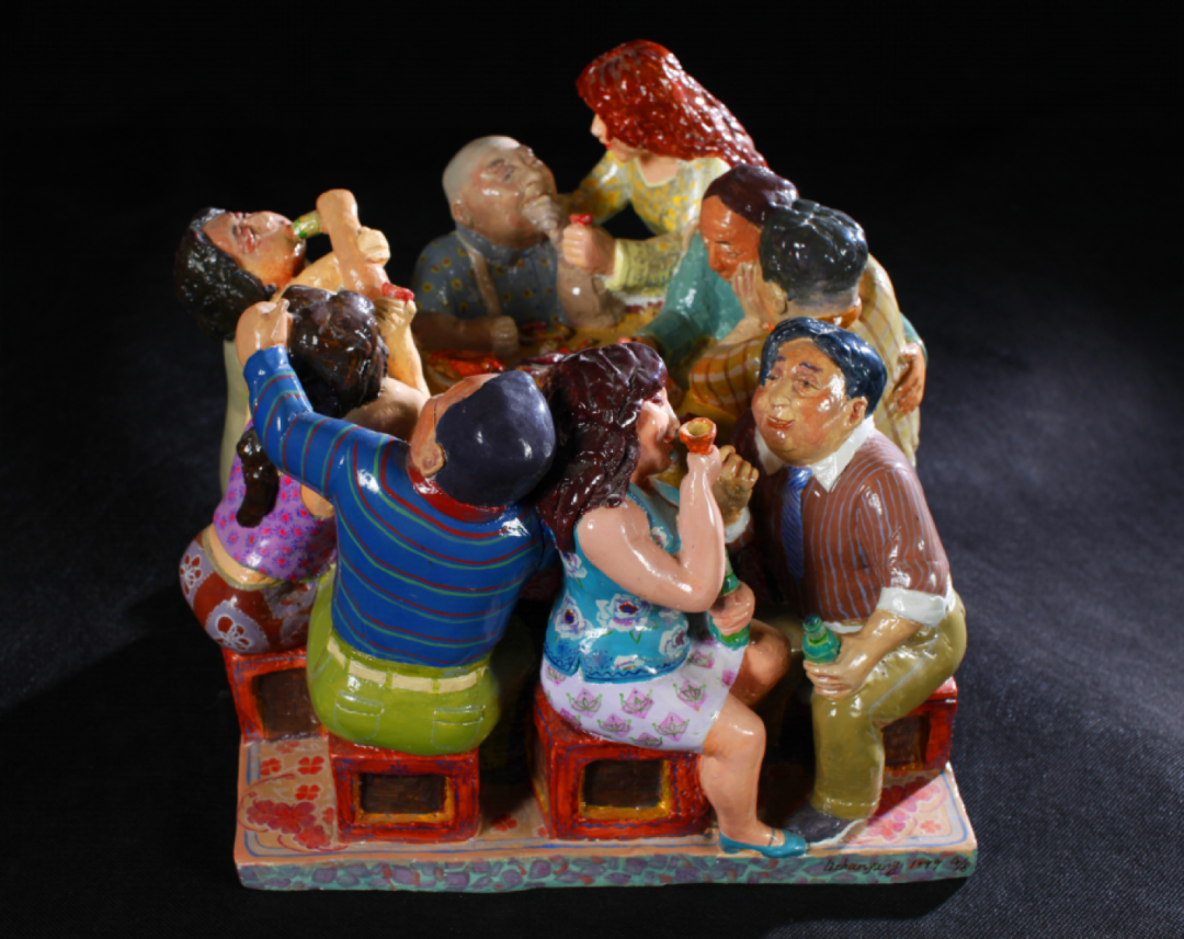 李占洋,《吃火锅》,铸铜,33×28×34cm,1999