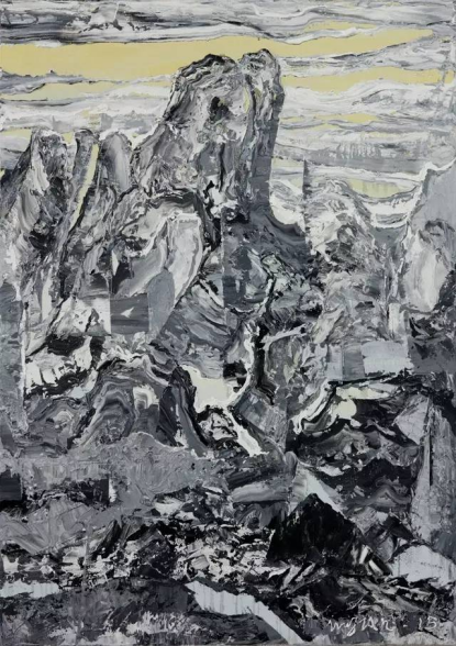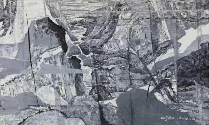 吴翦,《千山万壑》, 布面油画,250×150cm,2018