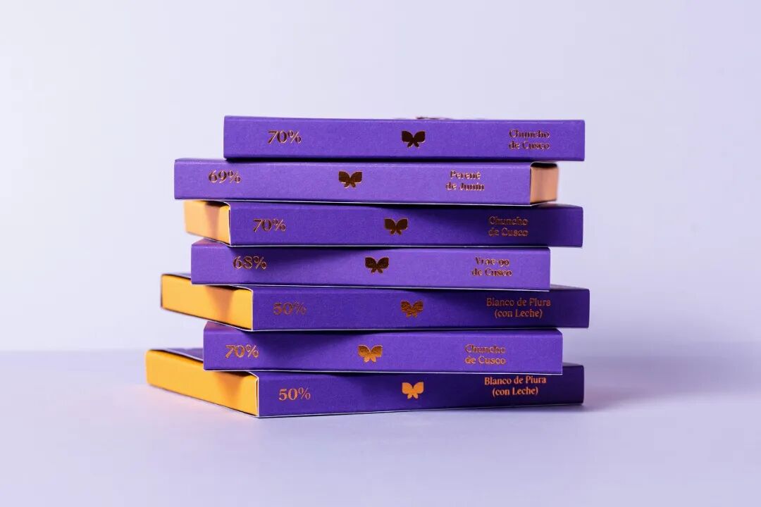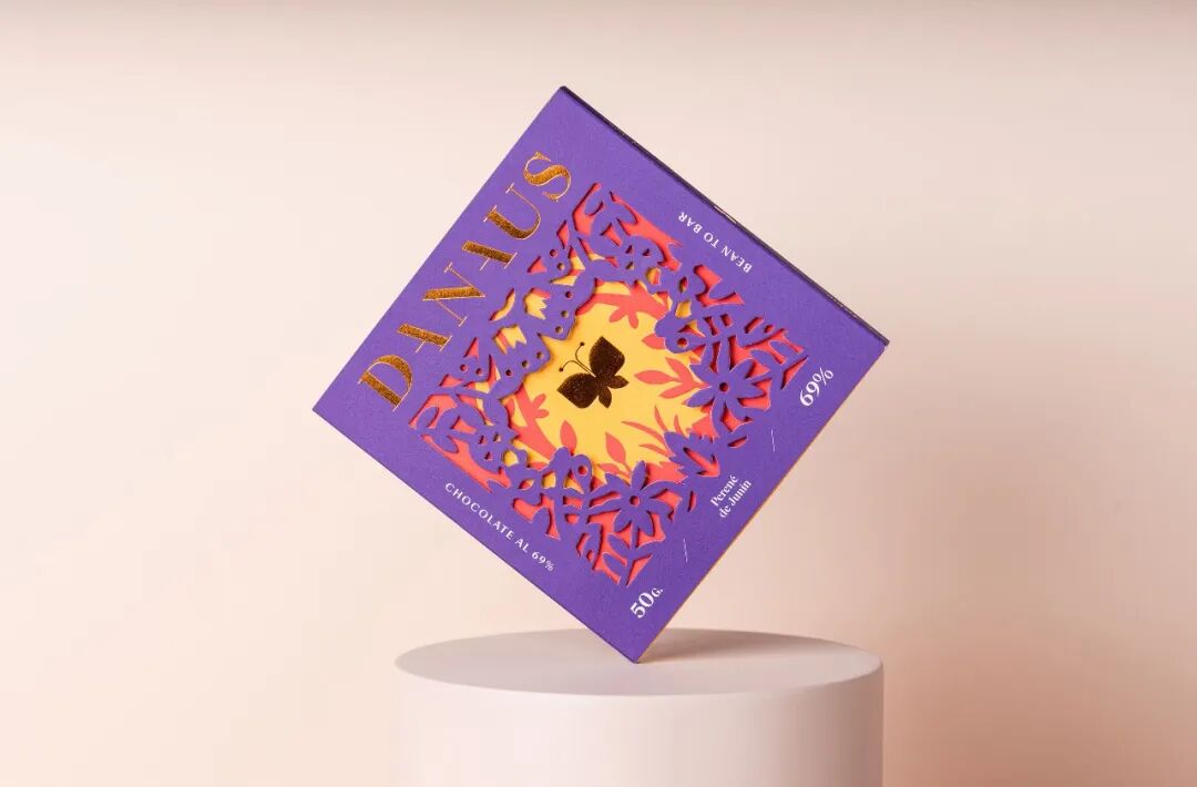 "一只蝴蝶翅膀的扇动可以在世界的另一端引起一场飓风"。Danaus是一款来自秘鲁利马的豆制巧克力。该品牌的概念,无论是在概念上还是在视觉上,都围绕着Danaus蝴蝶,俗称君主,它代表了该品牌希望在其客户身上看到的转变。包装是分层设计的,每一层都代表了蝴蝶生命周期的一个阶段,从毛毛虫到蛹,最后是蝴蝶。每一个细节都与Danaus的概念有关,标志的设计有不同的厚度,从厚到薄,代表了蝴蝶的形状,但也代表了蝴蝶的细腻性质。而色调的选择则是为了代表巧克力中的花草和水果的注入和内含物。巧克力棒本身的设计与包装一致,尺寸正好是10厘米,是Danaus蝴蝶的平均翼展。