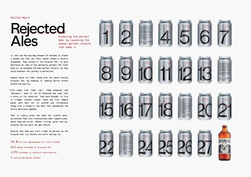 为了告诉大家他们对于啤酒近乎完美的要求,他们请设计师Brogen Averill 以1-27 数字命名,设计出一组「被拒绝的啤酒」系列。