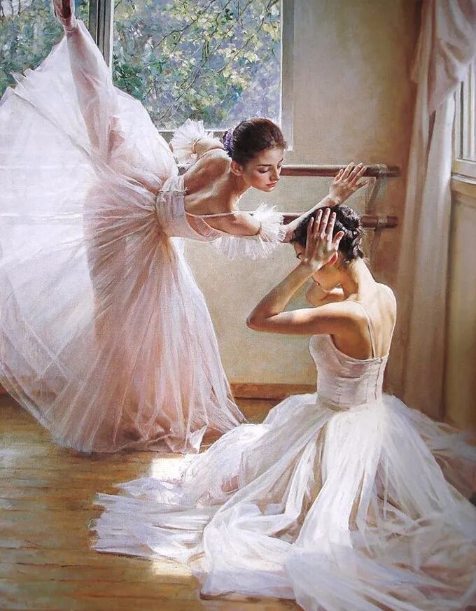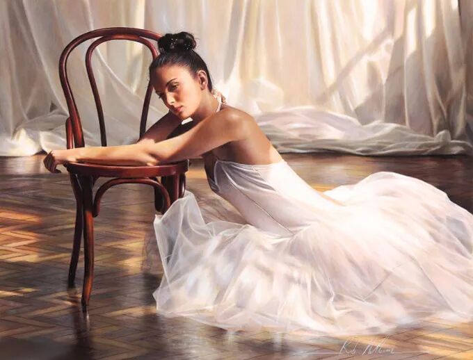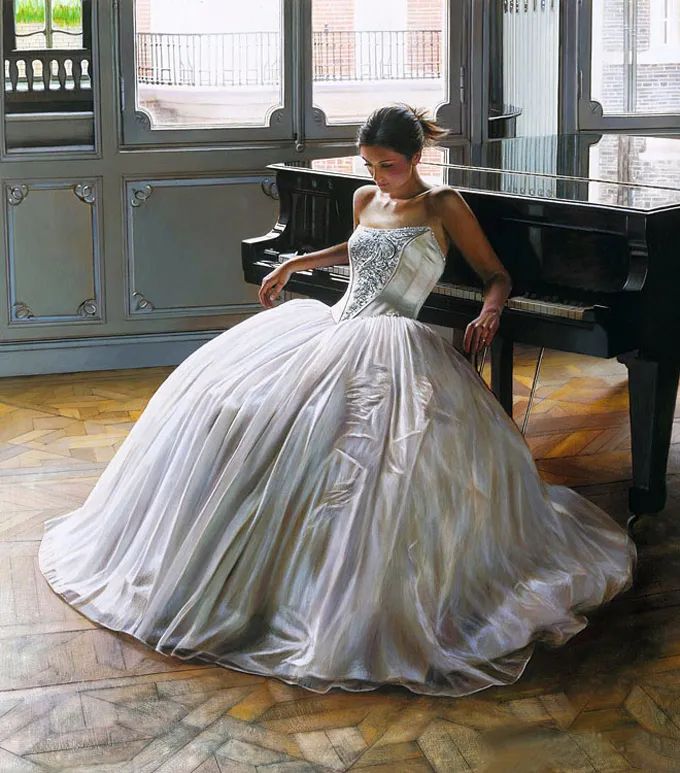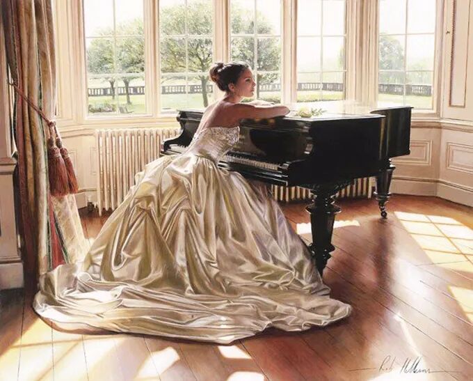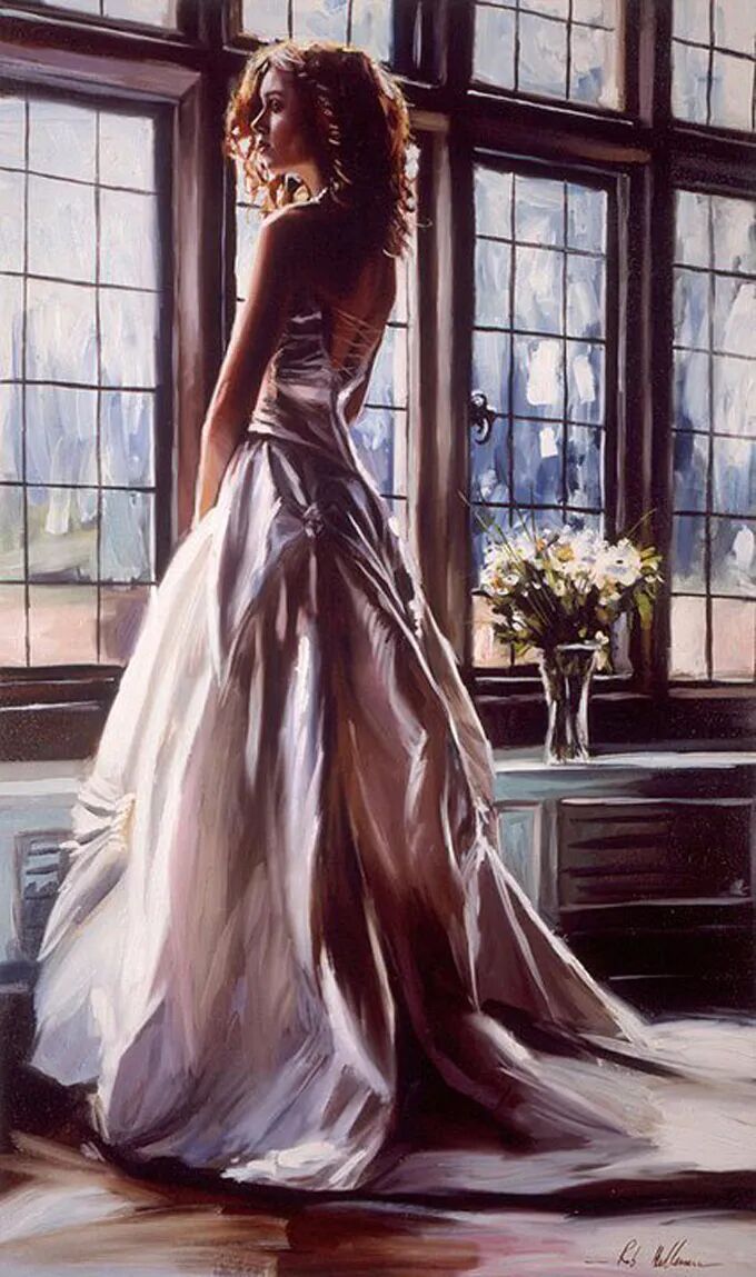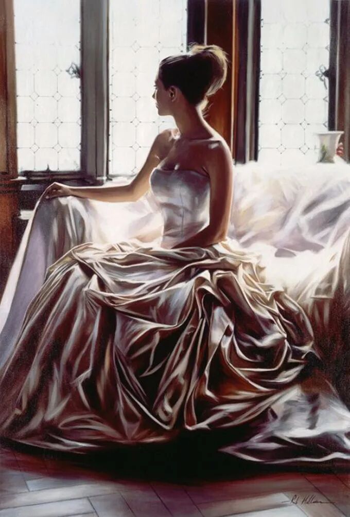 在他的作品中,女性主体普遍沉浸在感性和浪漫的氛围中。使所代表的主题十分和谐。画中的女人们面色安详,传递着一种甜蜜的期待和内心的幸福感。