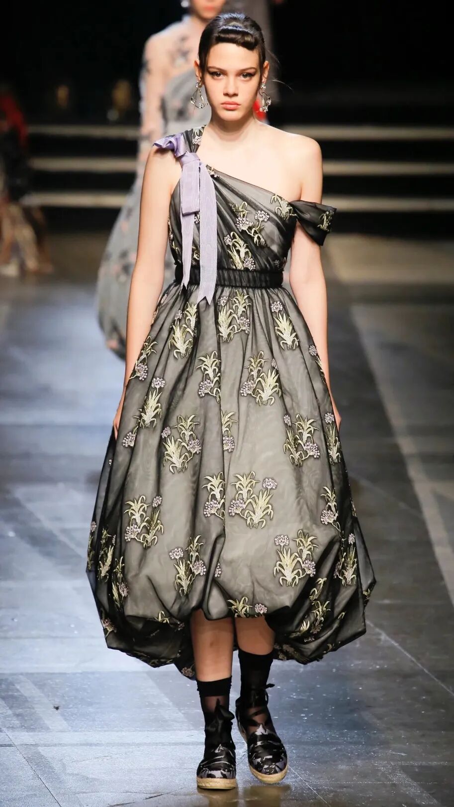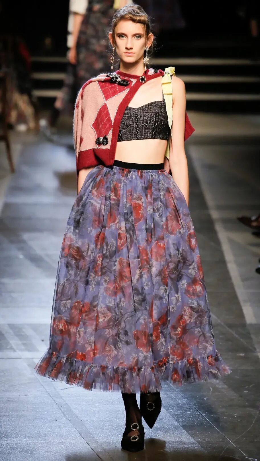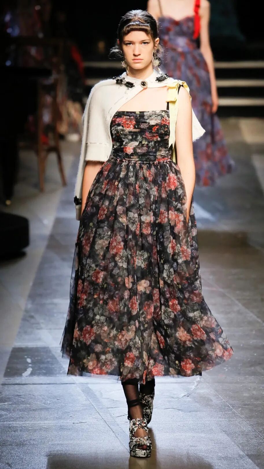 而这三条刺绣了花卉的裙子,灵感则是来自1953年女王加冕时的造型。亮点在将蝴蝶结打在吊带上,看完就知道下次蝴蝶结打哪里了。