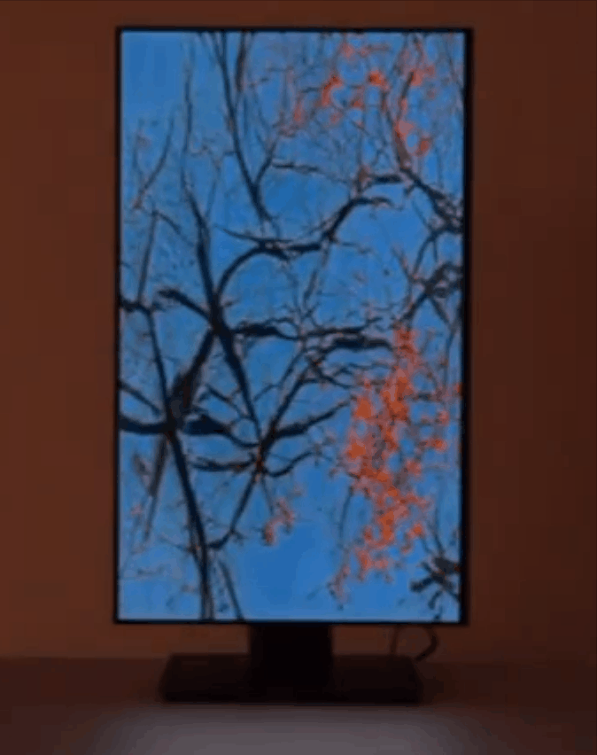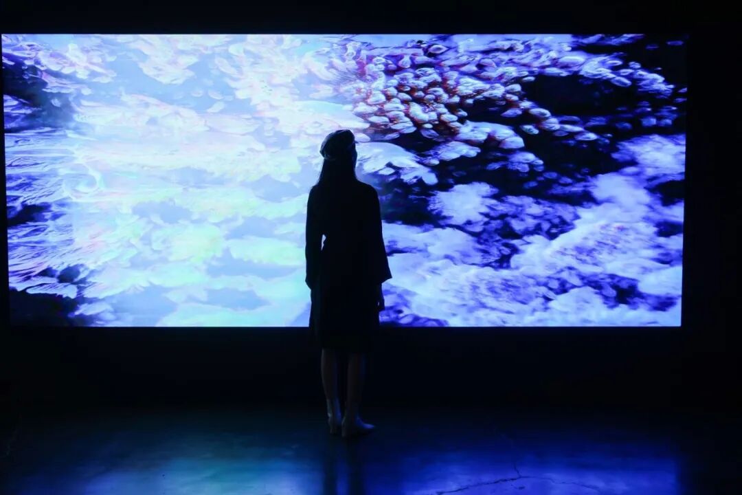 在<YH>(银湖)中,我使用了一个 GAN 来生成不断变化的水下景观,其中包含了不同的珊瑚图像。在这个作品中,当人们接近时,珊瑚会慢慢地扭曲和变白。这个想法是为了让人们更加理解和关注“珊瑚白化”这种问题,它是具有教育意义的。
