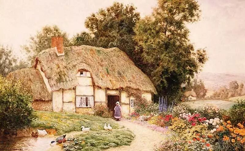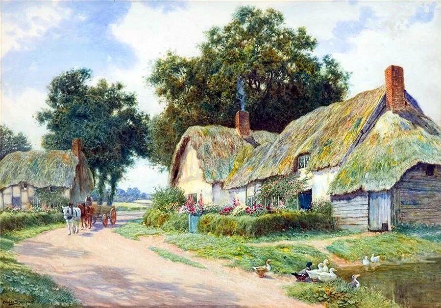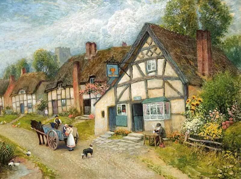 紧接着19世纪的维多利亚时代之后的就是著名的爱德华时代,这种闲适的乡村风景题材一直是当时很多画家爱用的描绘方式
